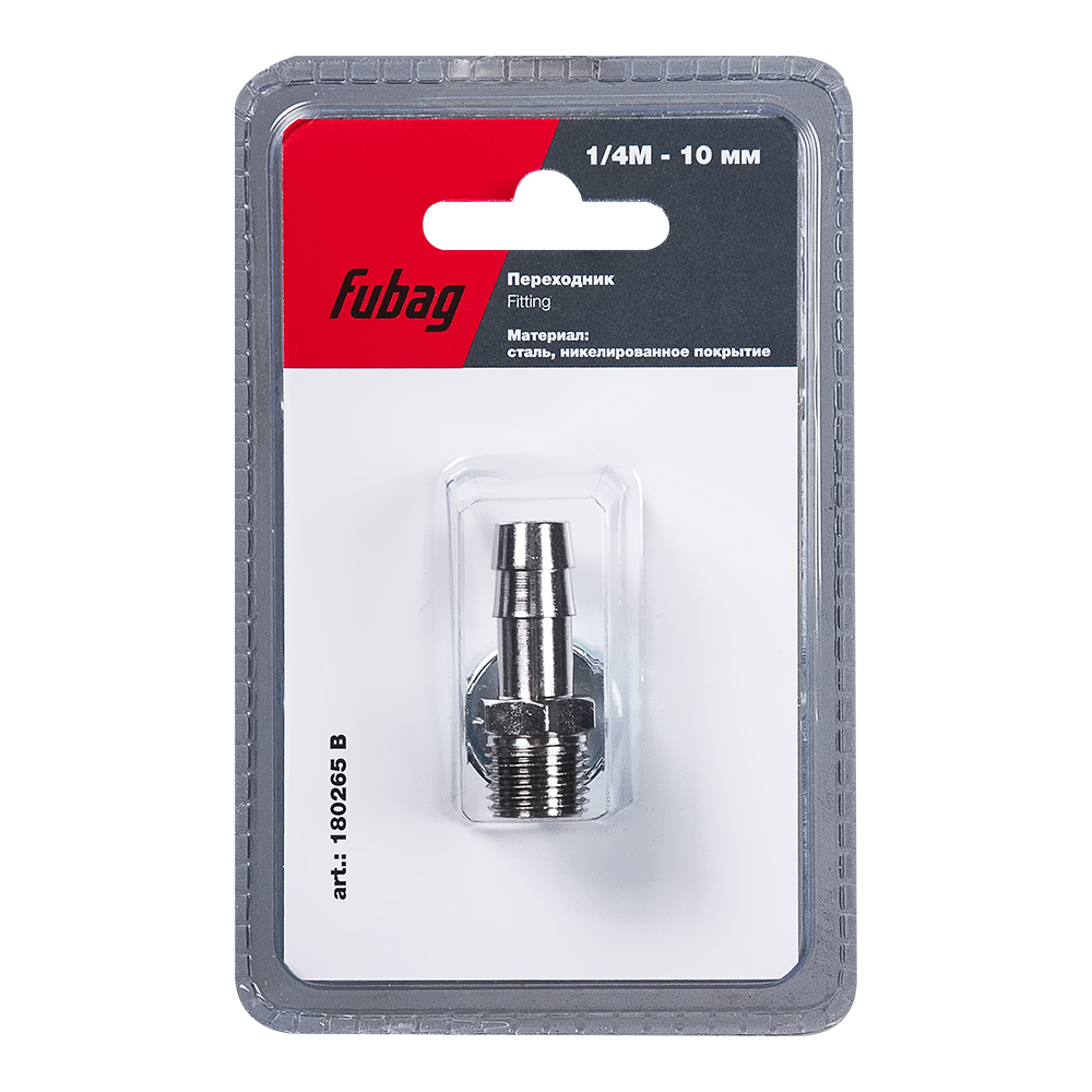 FUBAG Переходник 1/4 дюйма М на елочку 10мм с обжимным кольцом 15Х18мм, блистер 1 шт