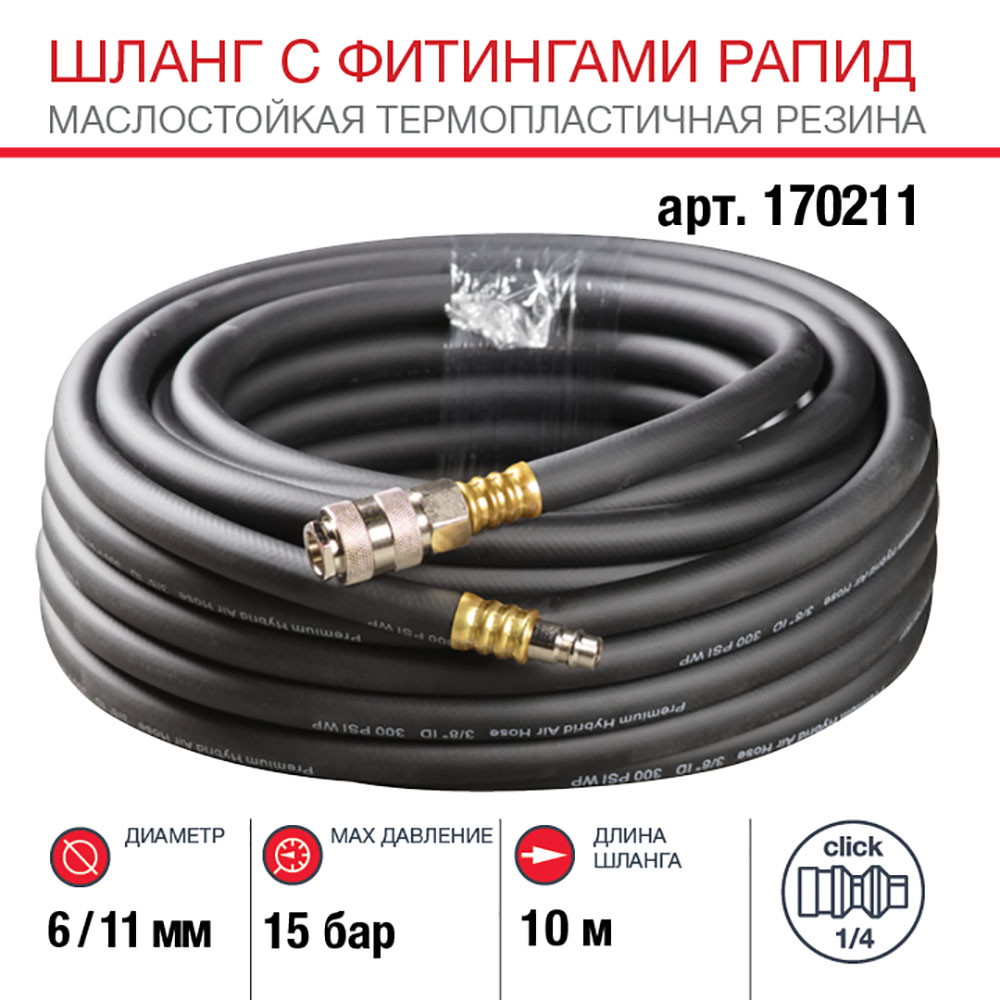 FUBAG Шланг с фитингами рапид маслостойкая термопластичная резина 10м, диаметр 6х11 мм