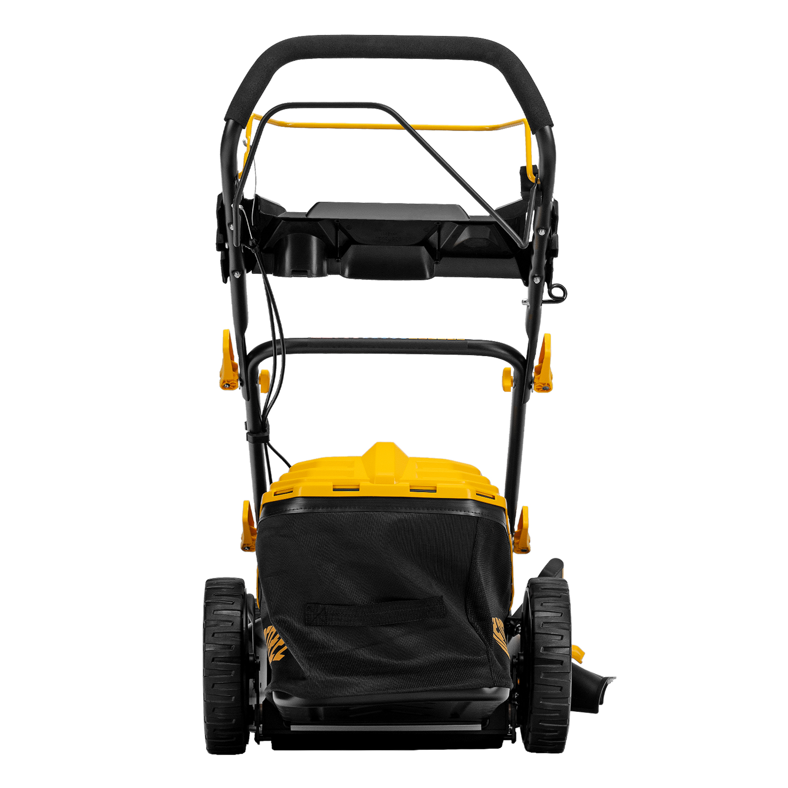 - Продуманная конструкция и стильный дизайн — оптимизированная форма деки способствует лучшему всасыванию травы, а матовая краска придает эффектности.