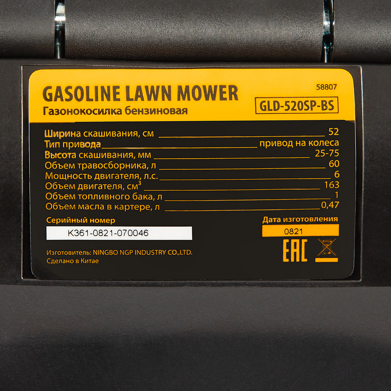 Газонокосилка бензиновая GLD-520SP-BS, 163 см3, Briggs Stratton, ширина 52 см, привод, 60 л Denzel