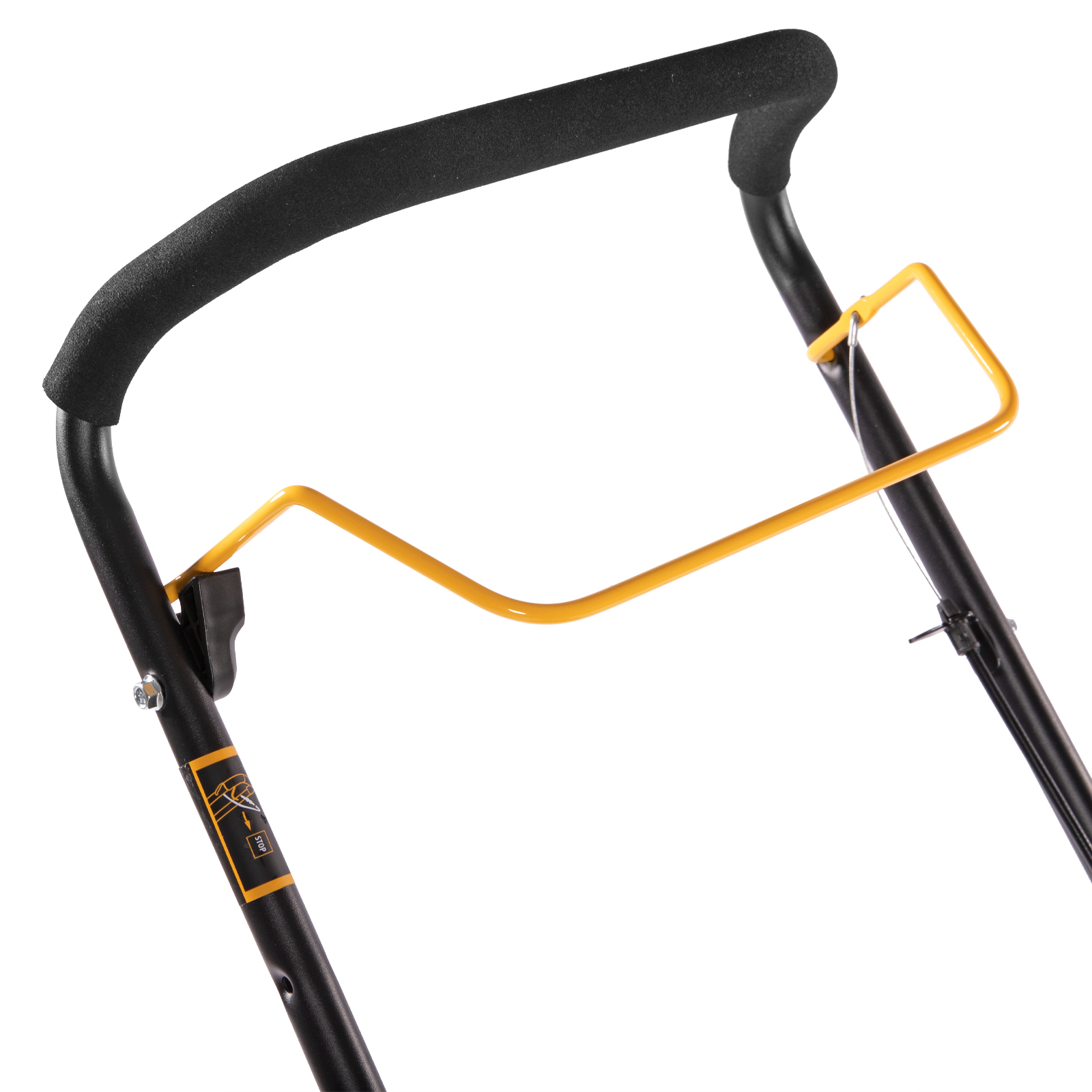 - Удобный выбор режима работы — за счет отсутствия травосборника переключаться между мульчированием и боковым выбросом проще, т.к. не нужно устанавливать заглушки.