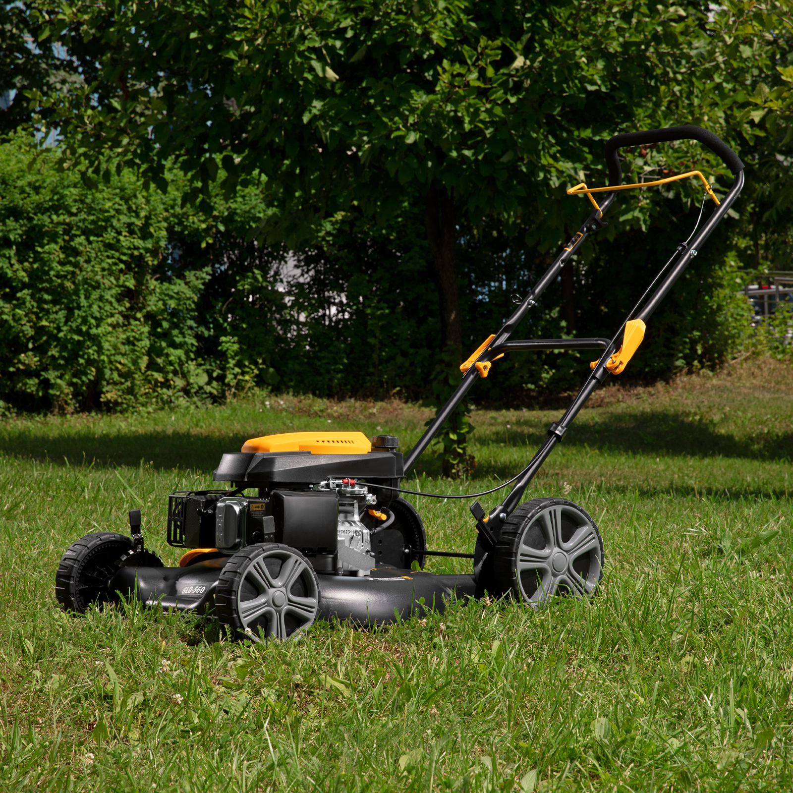- 5 уровней скашивания в диапазоне 30-80 мм — можно создать несколько типов газона, например, спортивный или садово-парковый