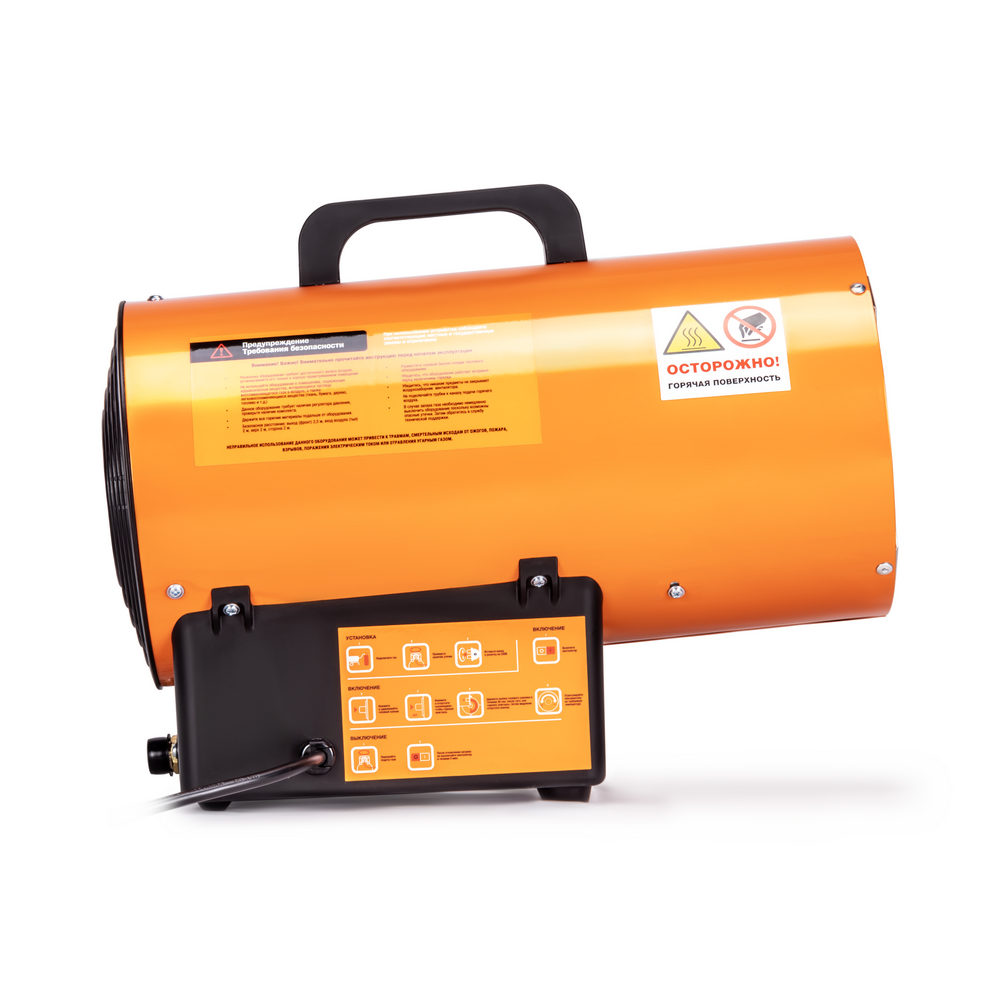 Устройству необходимо подключение к бытовой розетке 16А/230В для обеспечения работы вентилятора, создающему поток воздуха для обогрева помещения,