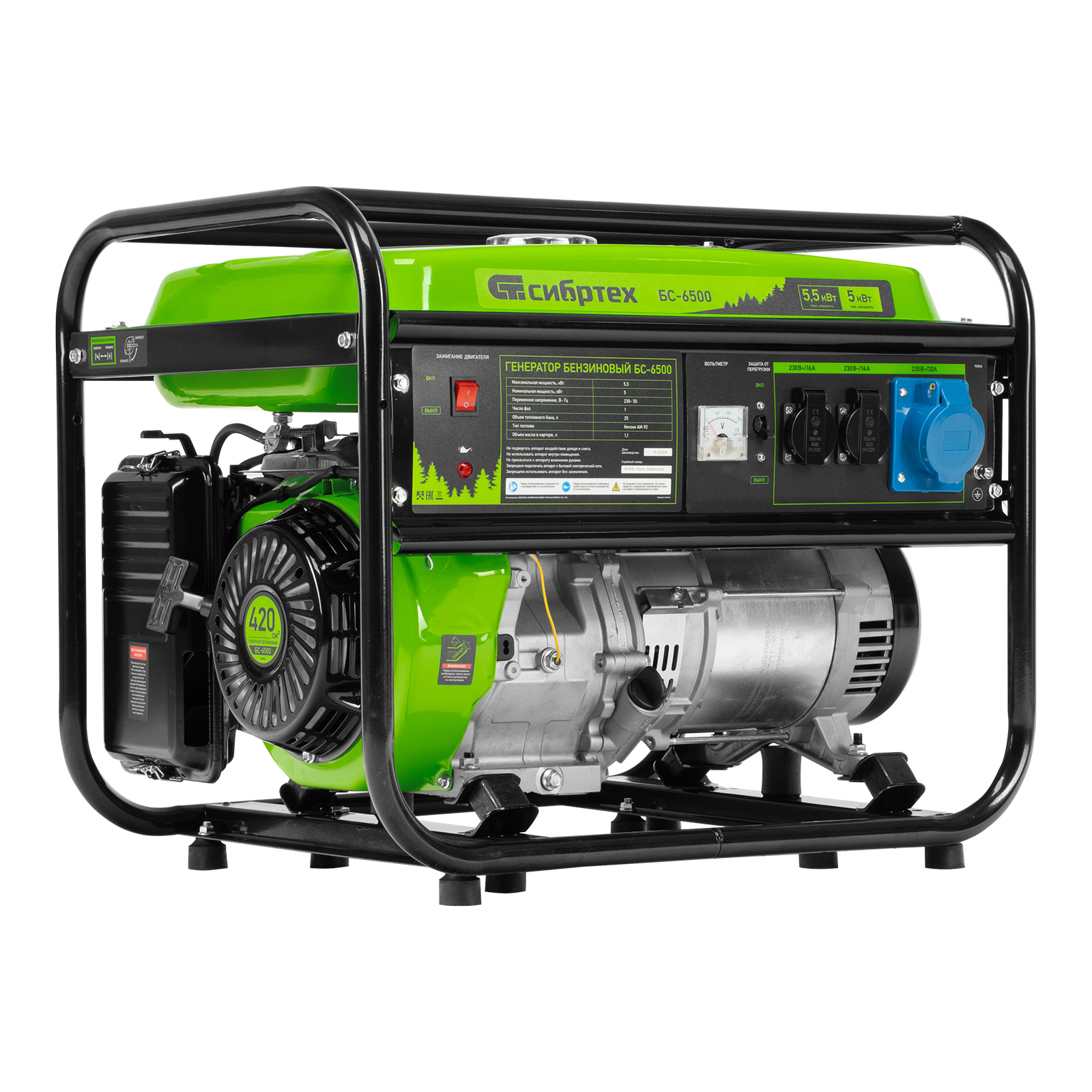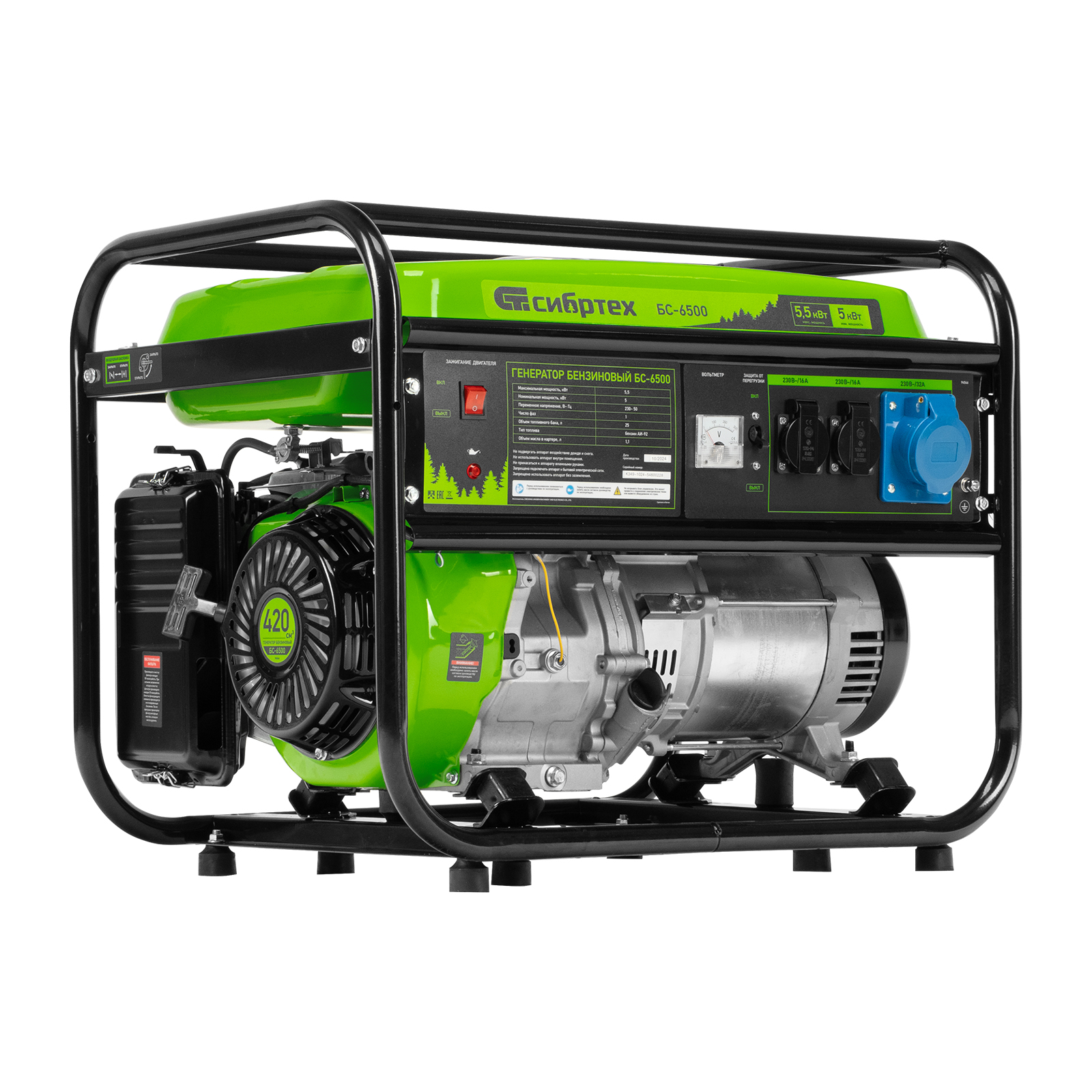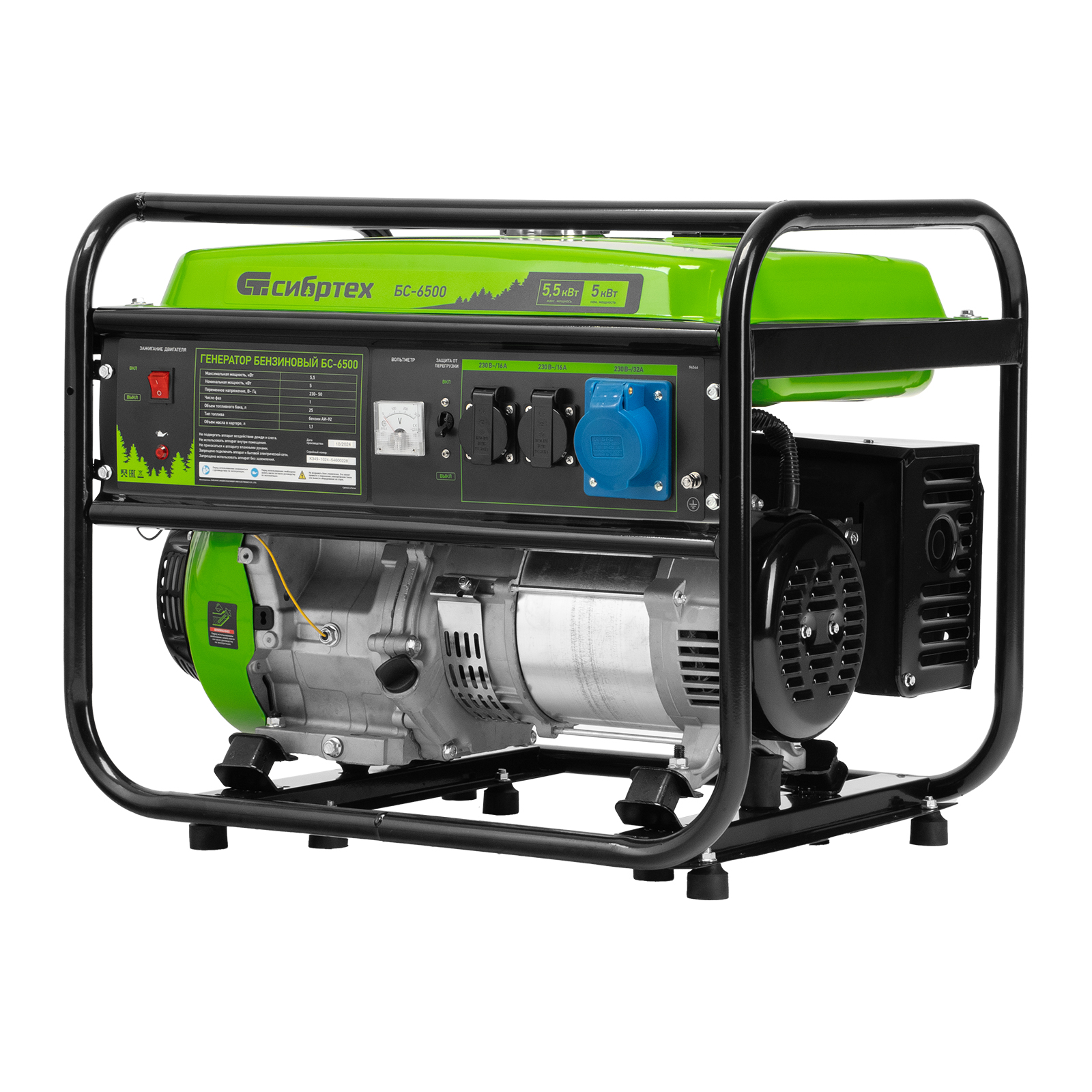 Генератор бензиновый БС-6500, 5.5 кВт, 230В, четырехтактный, 25 л, ручной стартер Сибртех