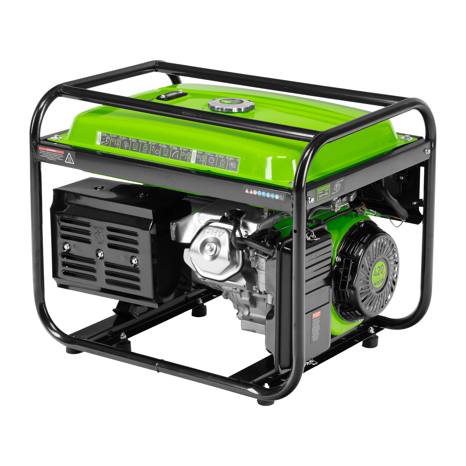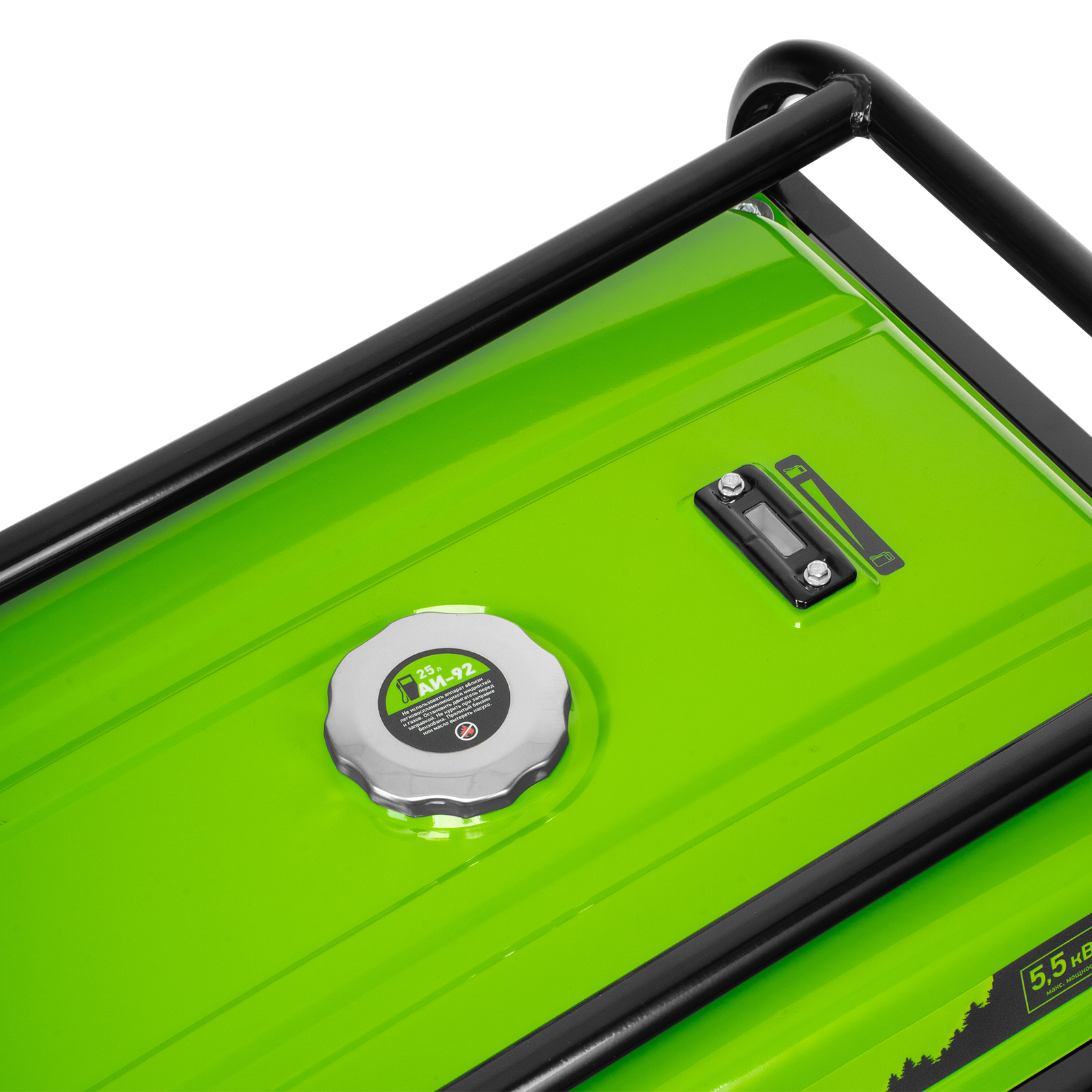 Бензиновый генератор Сибртех БС-6500 94546 на 230 В, с 4-тактным двигателем, баком на 25 л и ручным стартером, выдает 5,5 кВт и подходит для создания целой электросети в загородном доме, магазине, мастерской или на строительной площадке. К нему можно одновременно подключить 5 ламп накаливания, холодильник, телевизор. Для подключения приборов предусмотрено 3 розетки. Одна из них силовая на 32А, что позволяет запитать мощное оборудование, например, электрическую плиту.