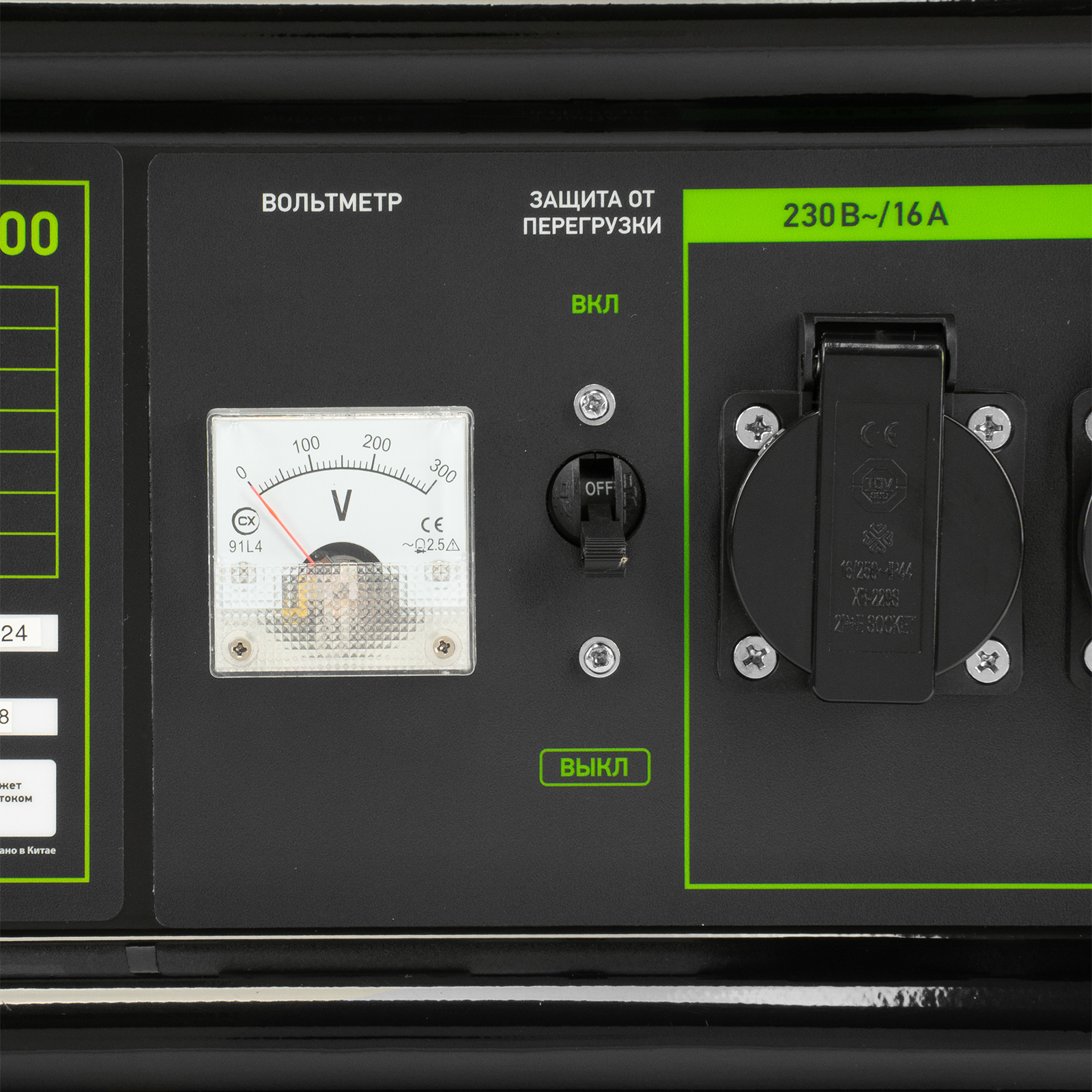 - Контроль рабочих параметров — встроенный вольтметр позволяет отслеживать напряжение в сети, а топливный индикатор — уровень бензина в баке.