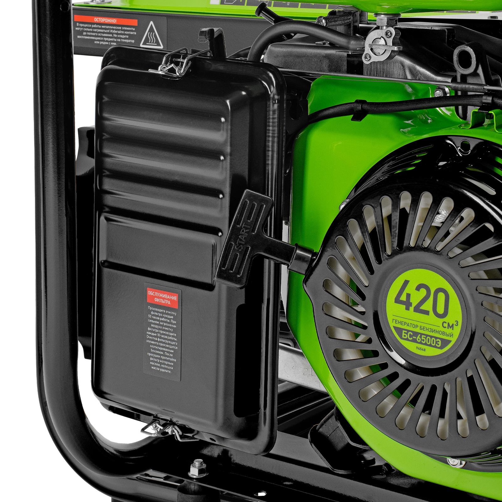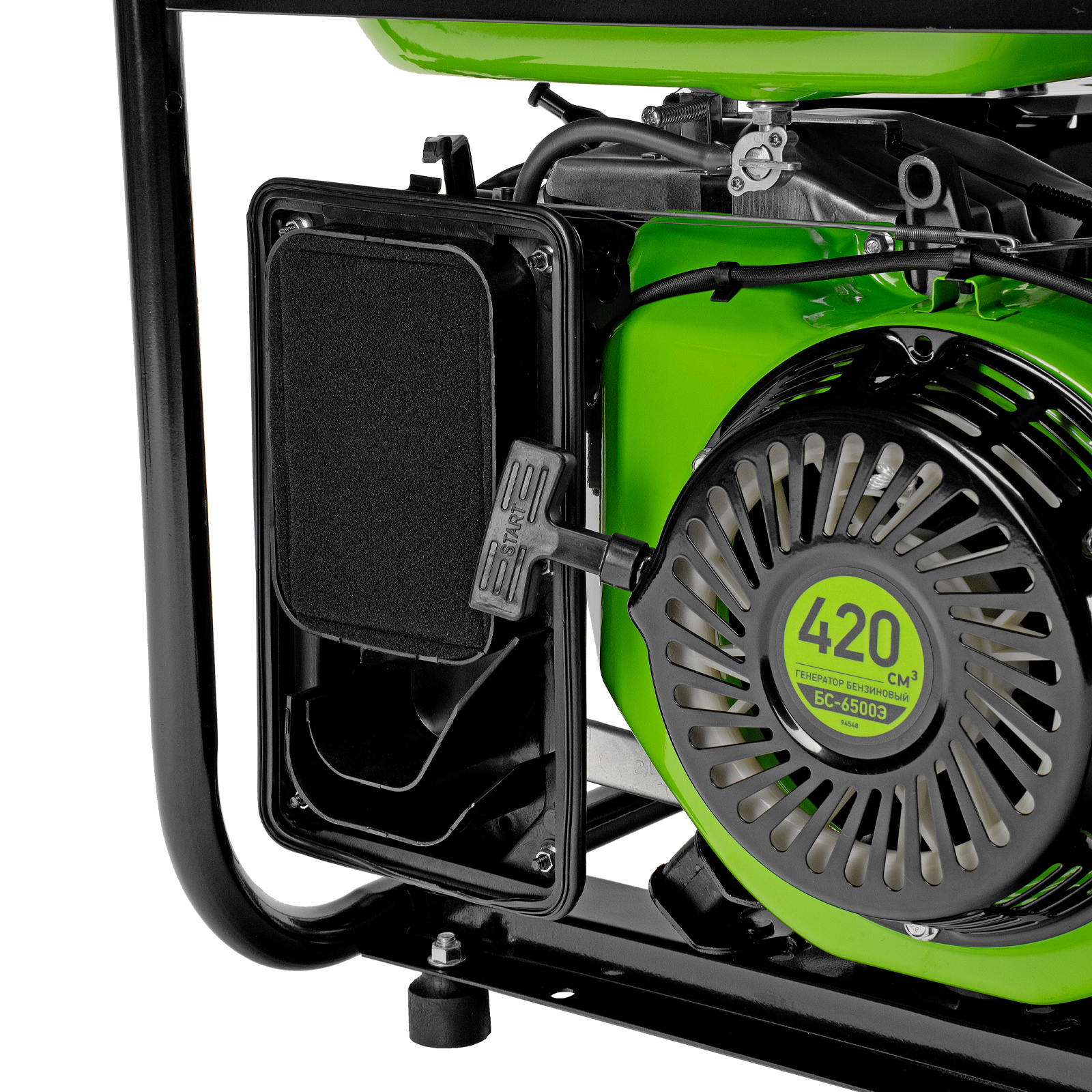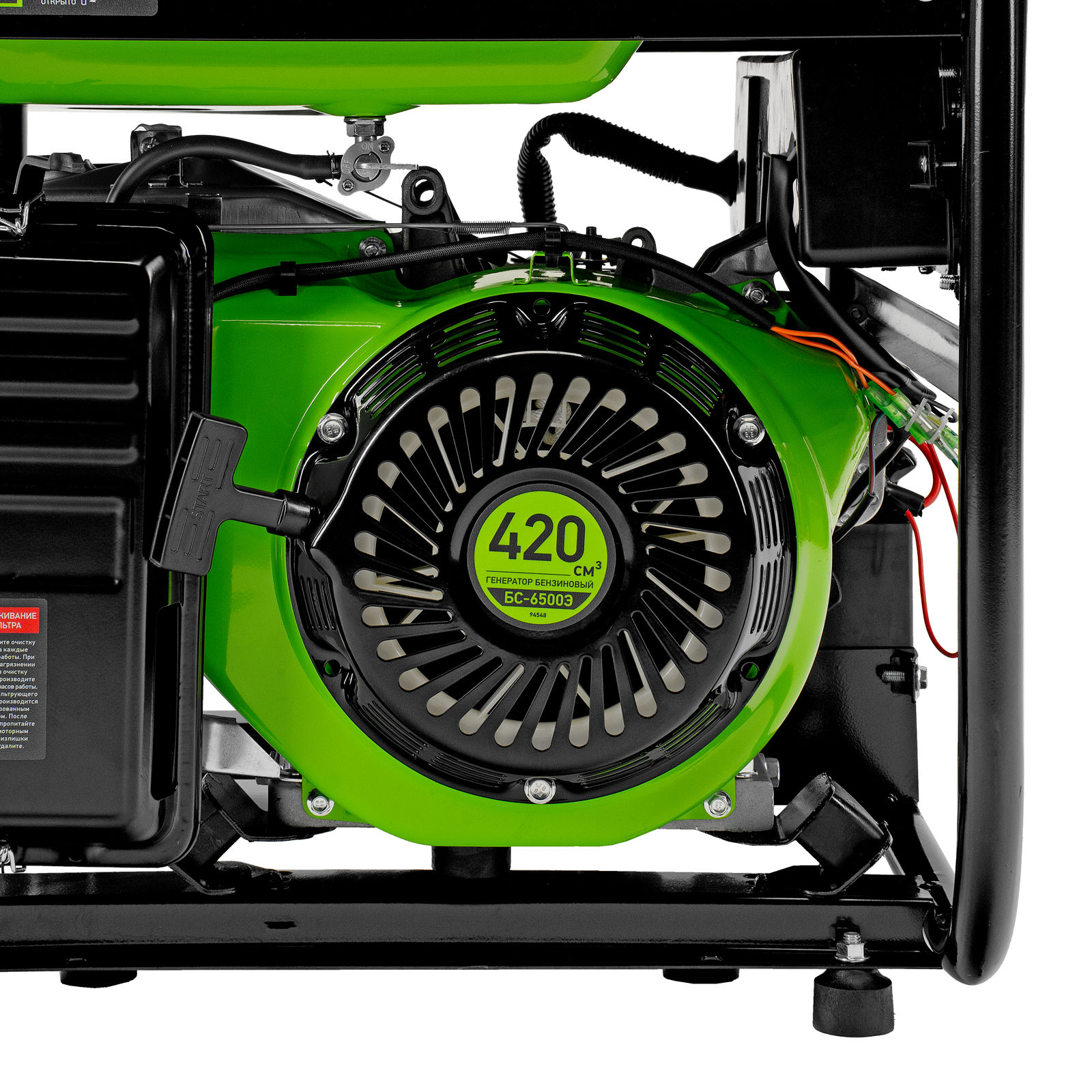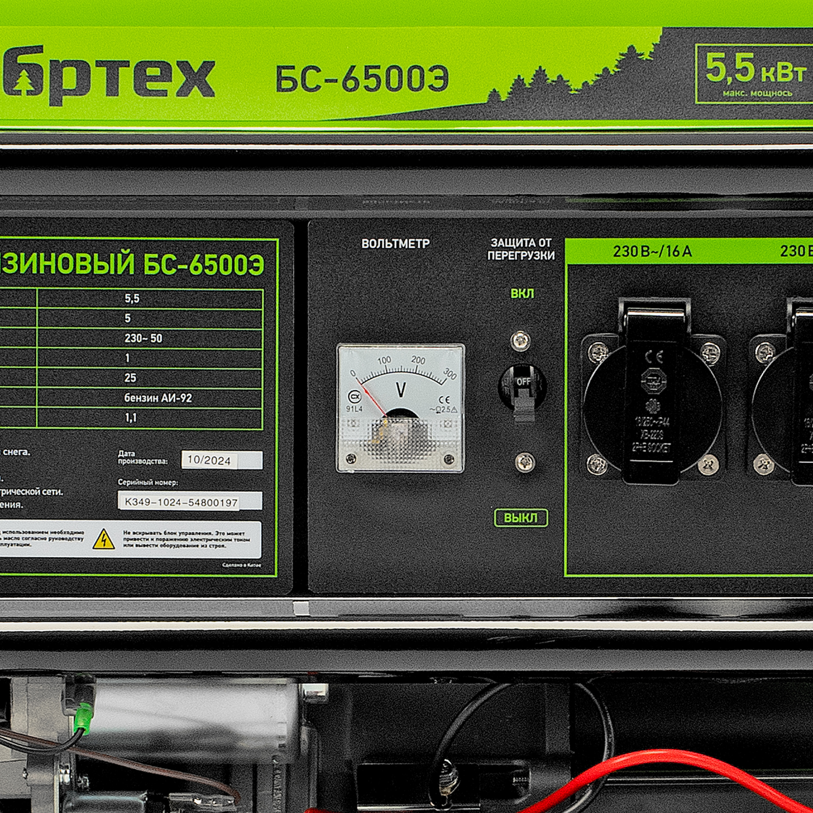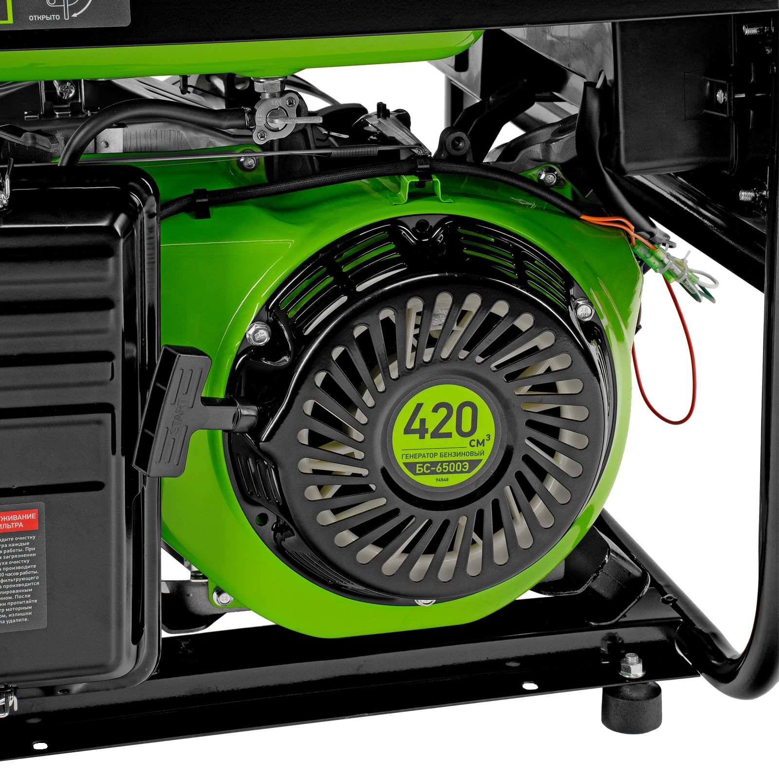 Бензиновый генератор Сибртех БС-6500Э 94548 максимальной мощностью 5,5 кВт, с 4-тактным двигателем, электростартером и баком объемом 25 л, выдает напряжение 230 В и используется для электроснабжения на даче, на строительной площадке, в магазине, в мастерской или гараже. Мощности хватает для обеспечения работы электроинструмента или одновременного подключения 4 ламп накаливания, телевизора, плиты и холодильника. Благодаря электростартеру запуск генератора осуществляется одним поворотом ключа.