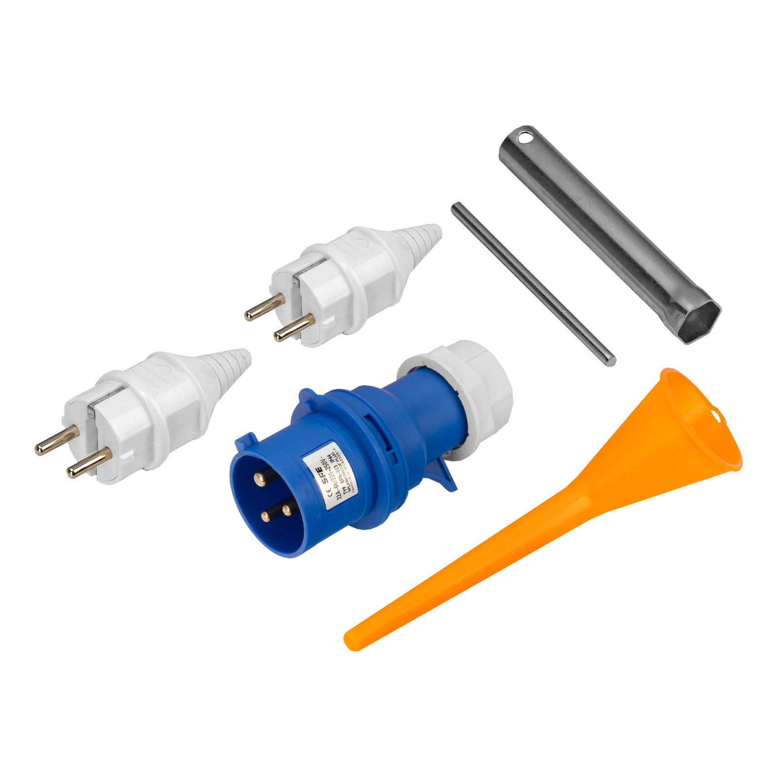 Генератор - 1 штКлюч свечной - 1 штВилка 230В/16А - 2 штВилка 230В/32А - 1 штРуководство по эксплуатации с гарантийным талоном - 1 шт |