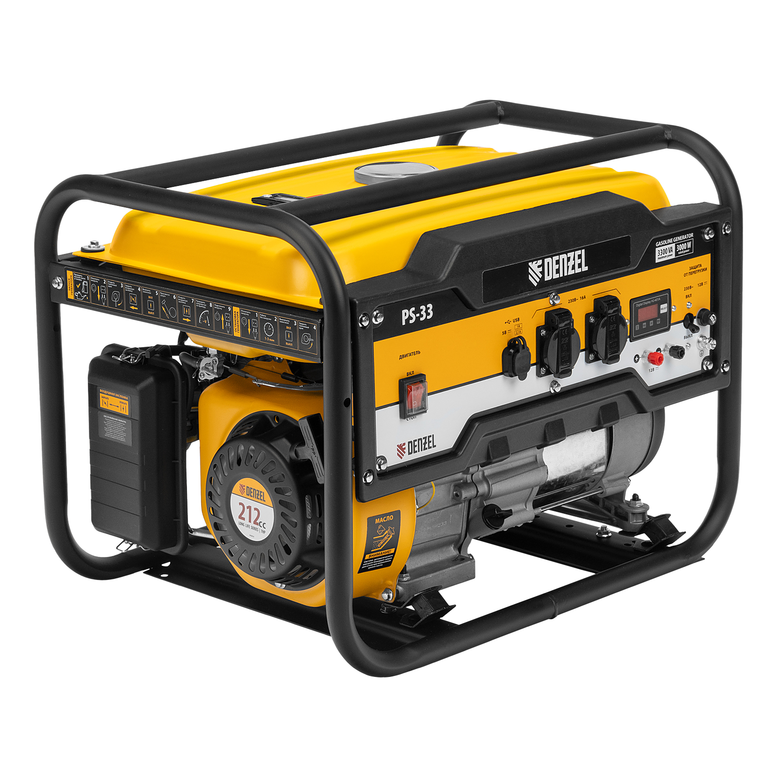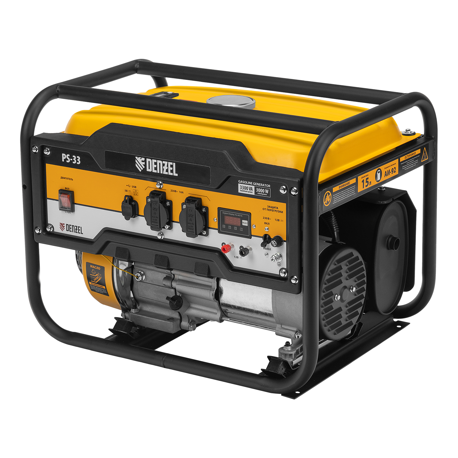 Генератор бензиновый PS 33, 3.3 кВт, 230 В, 15 л, ручной стартер Denzel