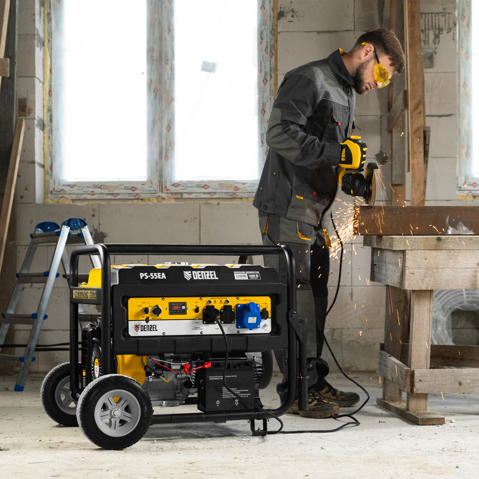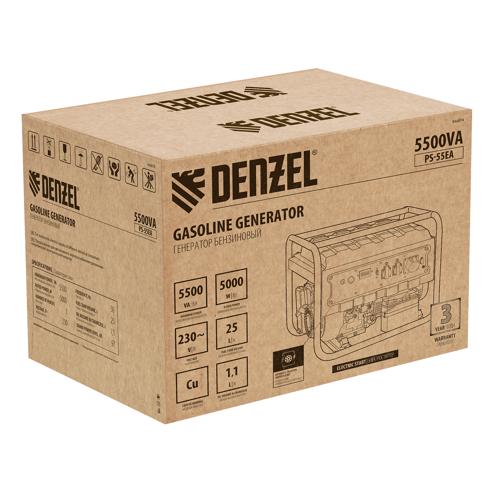 Генератор бензиновый PS 55 EA, 5.5 кВт, 230 В, 25 л, коннектор автоматики, электростартер Denzel