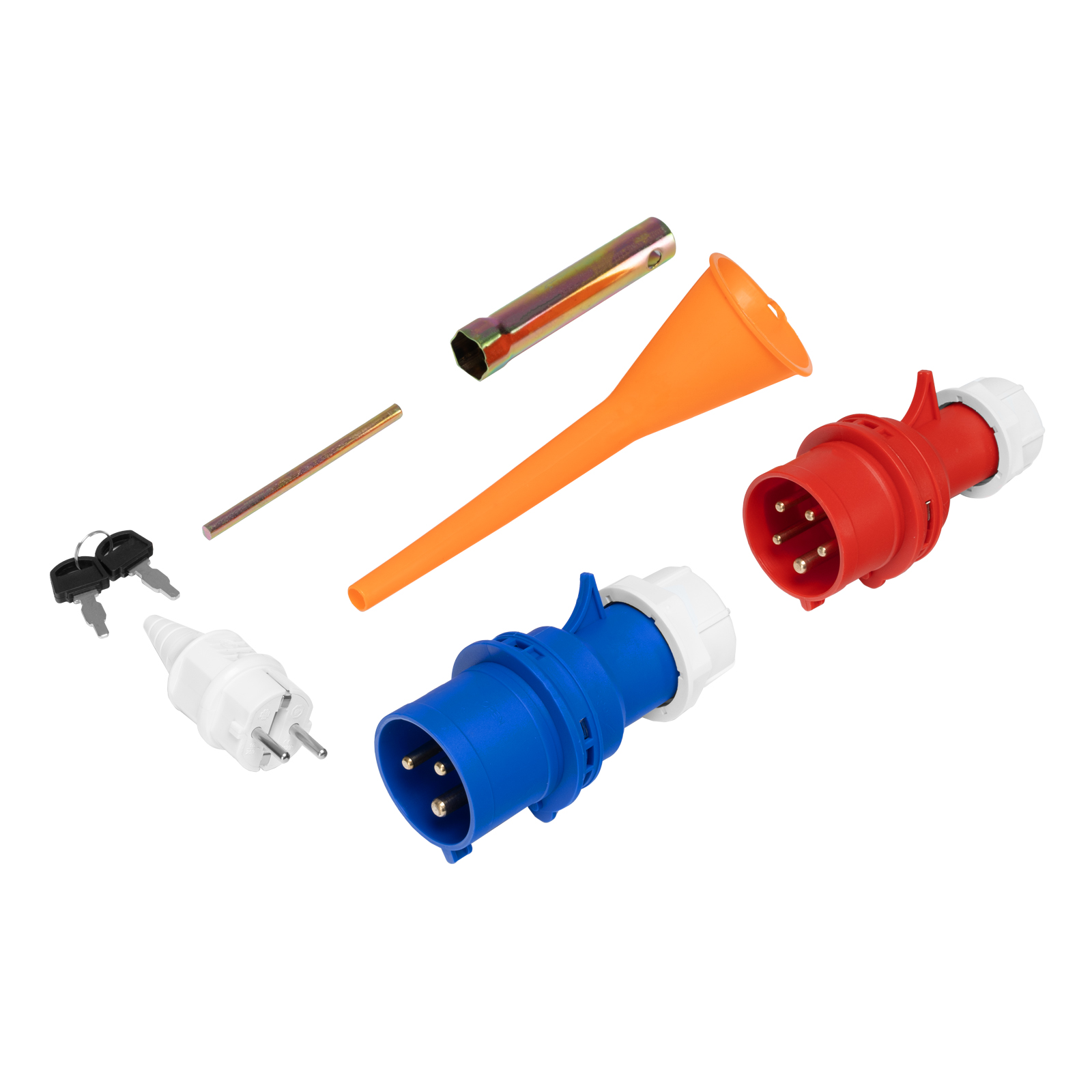 Генератор - 1 штКлюч свечной - 1 штКлюч зажигания - 2 штВилка 230В/16А - 1 штВилка 230В/32А - 1 штВилка 400В/16А - 1 штРуководство по эксплуатации с гарантийным талоном - 1 штБатарея аккумуляторная - 1 шт |