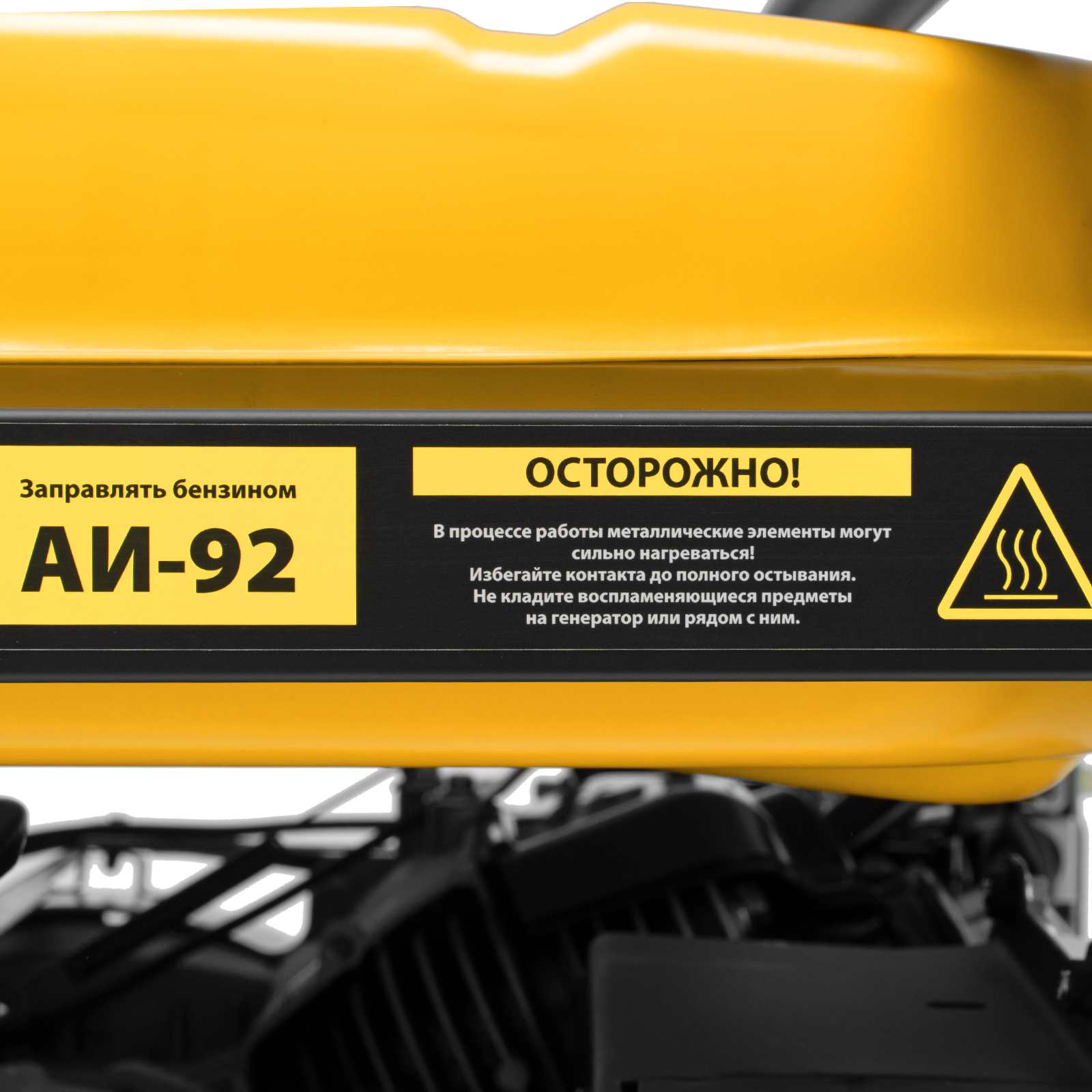 - Прочная конструкция — усиленная рама (диаметр труб 32 мм) защищает генератор от повреждений.