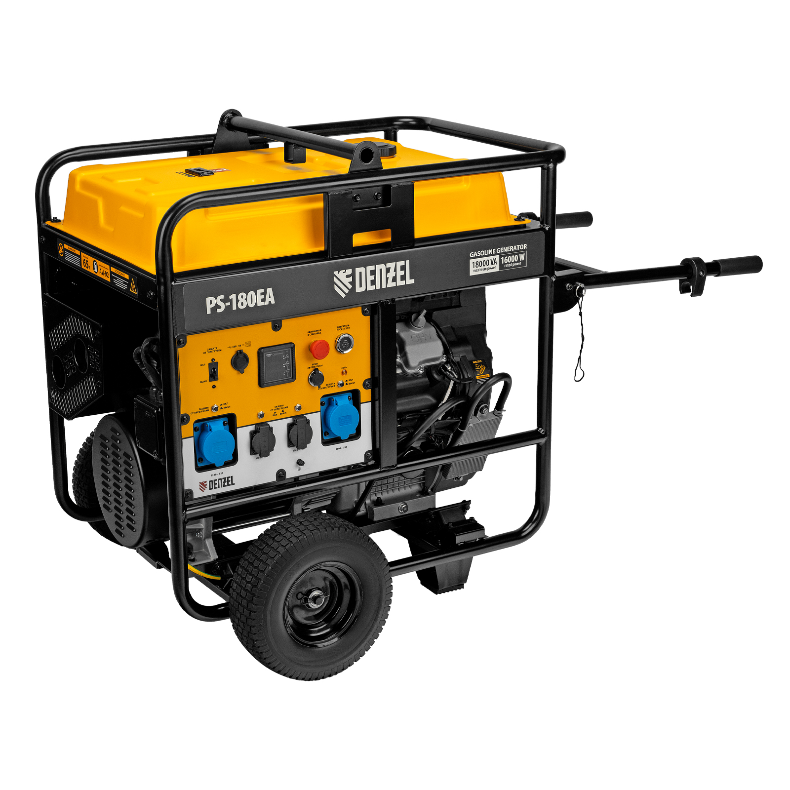 Генератор бензиновый PS-180EA, 18 кВт,230 В, 65л, разъём ATS,эл.старт Denzel