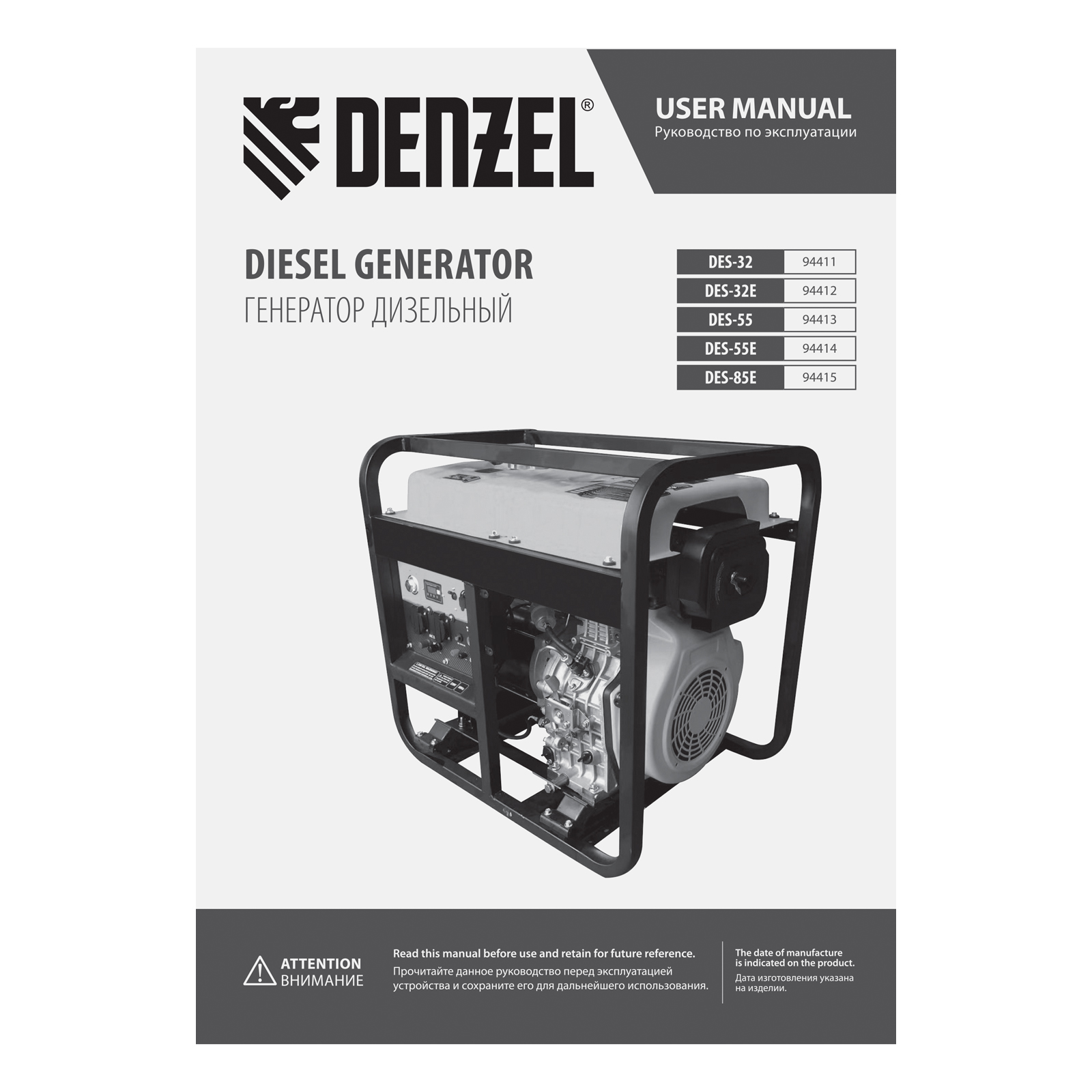 Генератор дизельный DES-32, 3,2 кВт, 230 В, 11 л, ручной стартер Denzel
