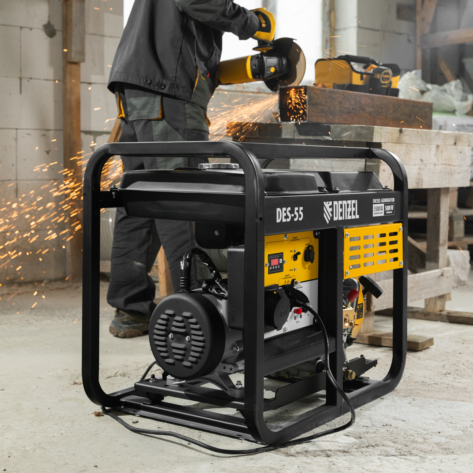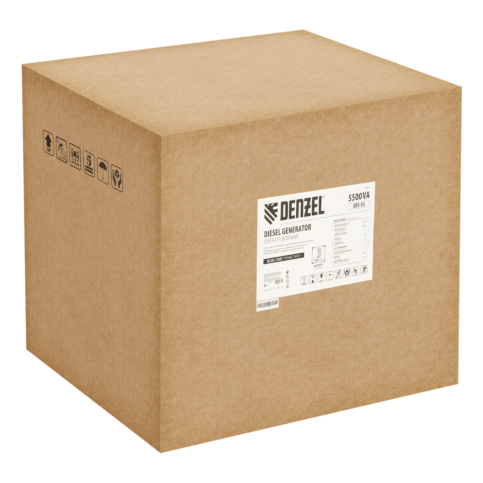 Генератор дизельный DES-55, 5,5 кВт, 230 В, 11 л, ручной стартер Denzel