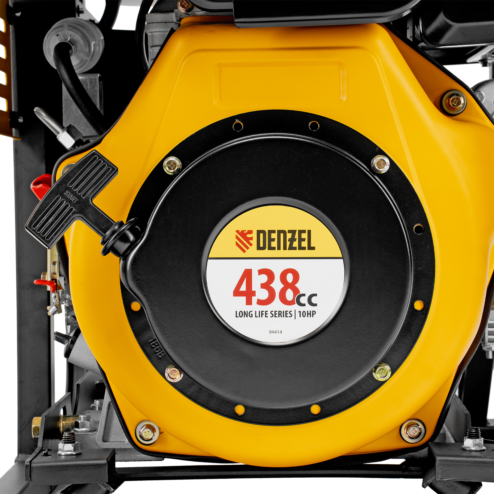 - Мобильность — к генератору можно приобрести транспортировочный комплект Denzel 94906 для перемещения по рабочей площадке.