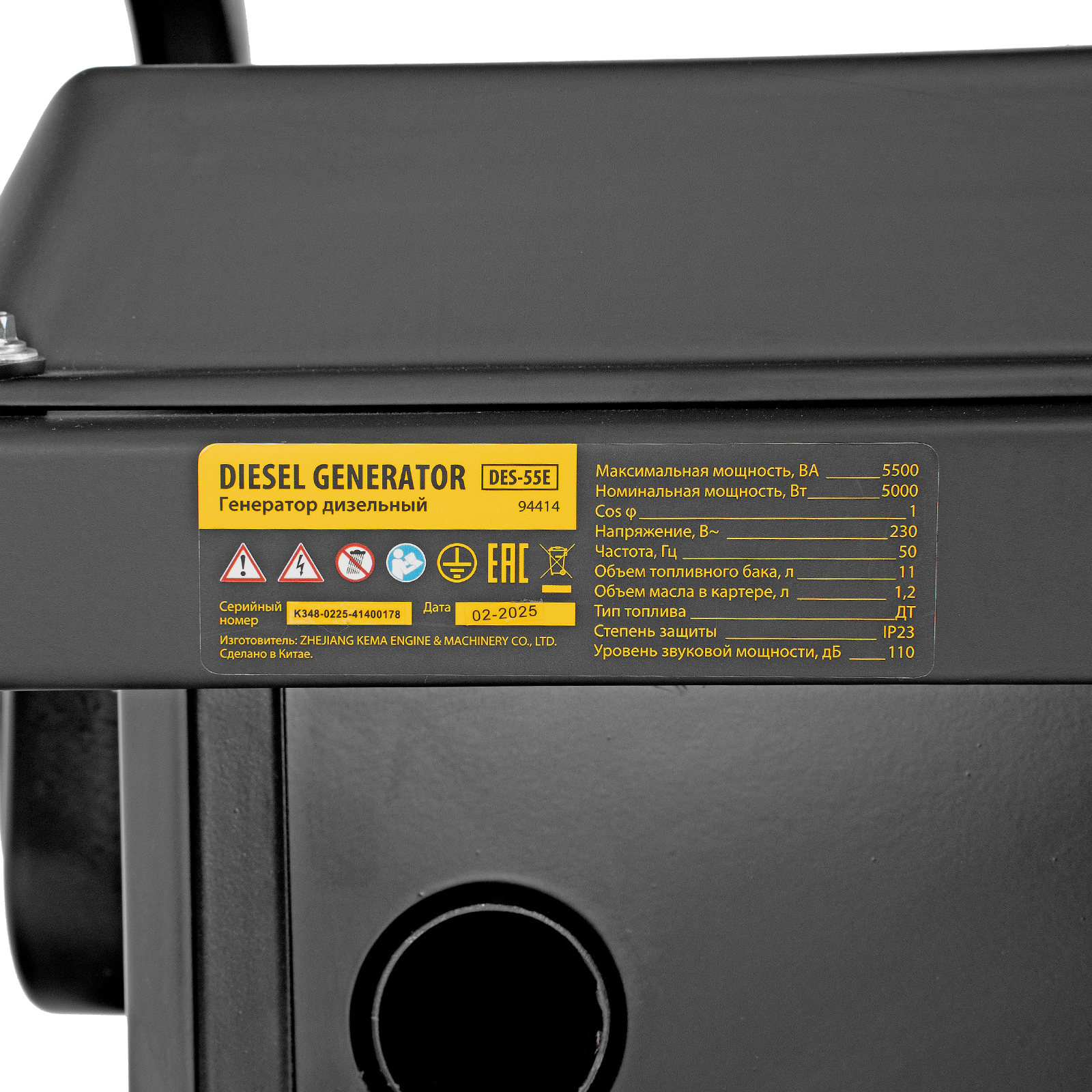 Генератор дизельный DES-55E, 5,5 кВт, 230 В, 11 л, электростартер Denzel в Москве
