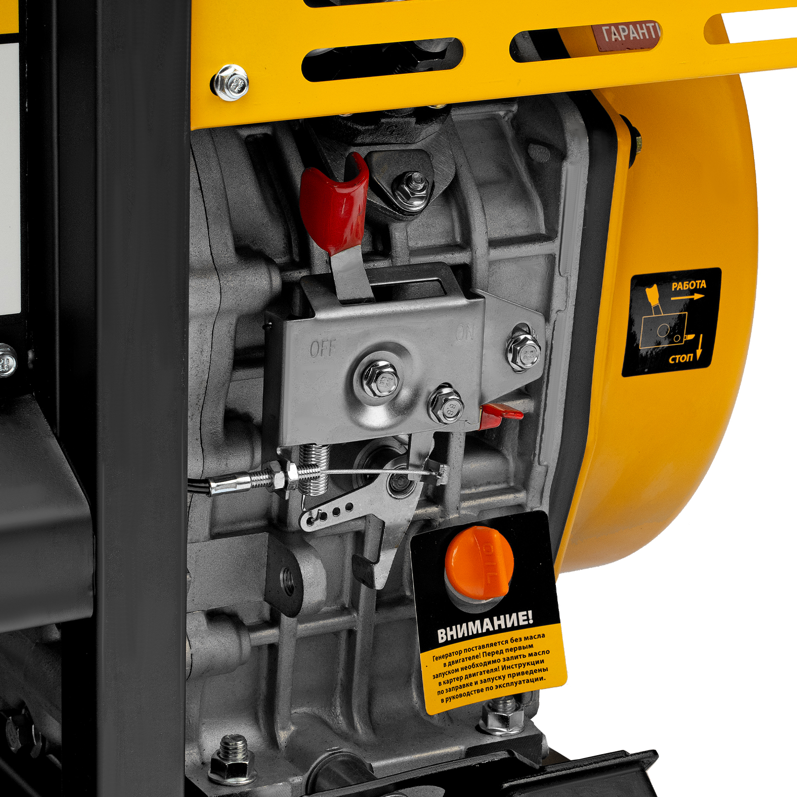 - Защита двигателя — генератор не запустится при недостаточном уровне масла в картере, фильтры препятствуют попаданию твердых частиц в цилиндры, а также посторонних примесей в топливо.