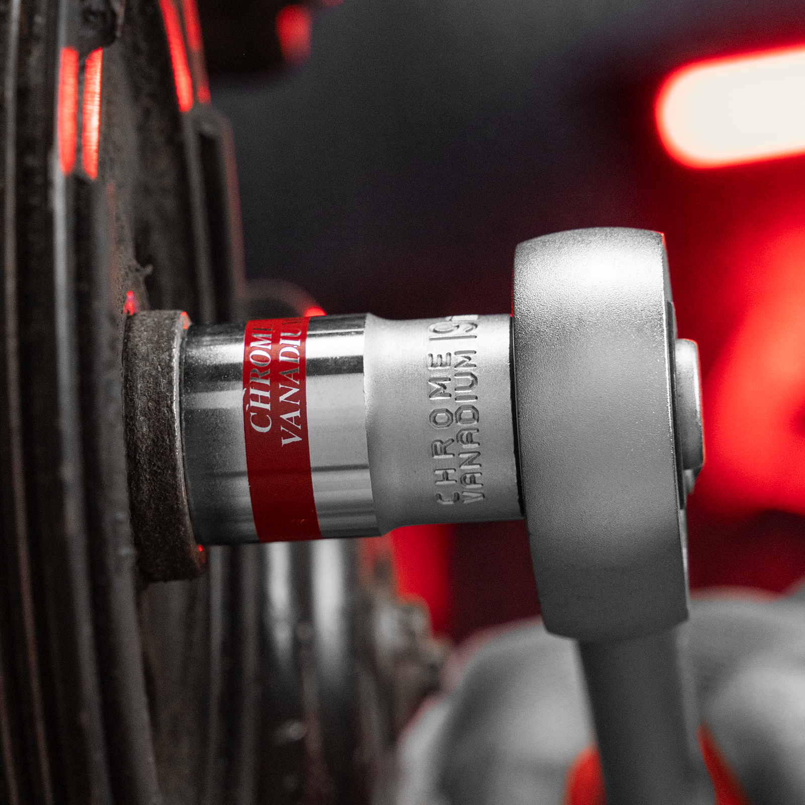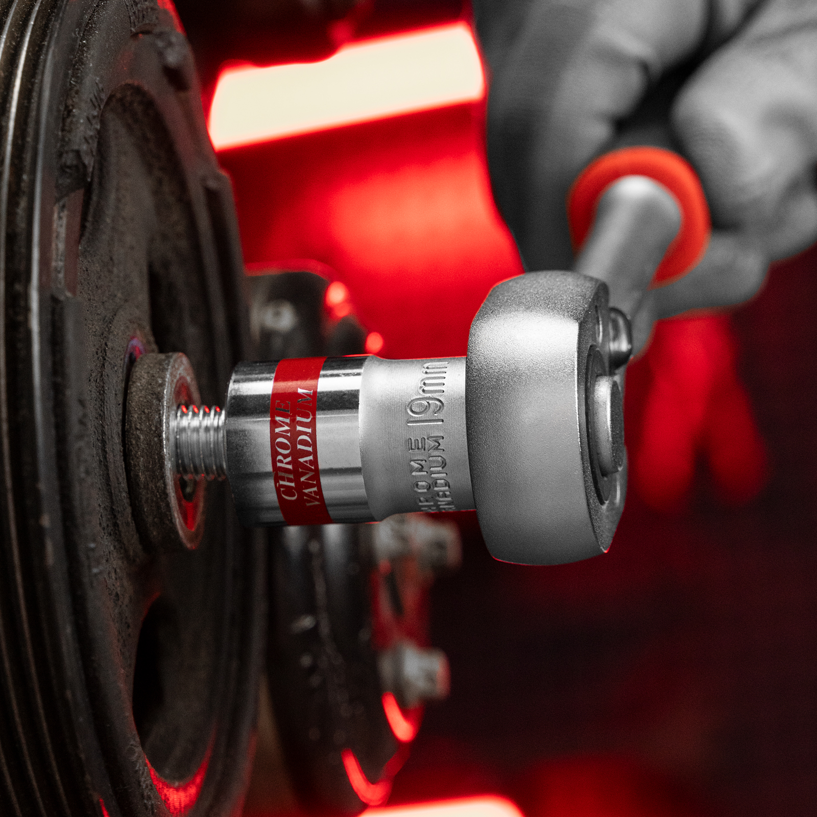 - Быстрый поиск среди других насадок — торцевая головка маркирована красной полосой, на корпусе указан типоразмер.