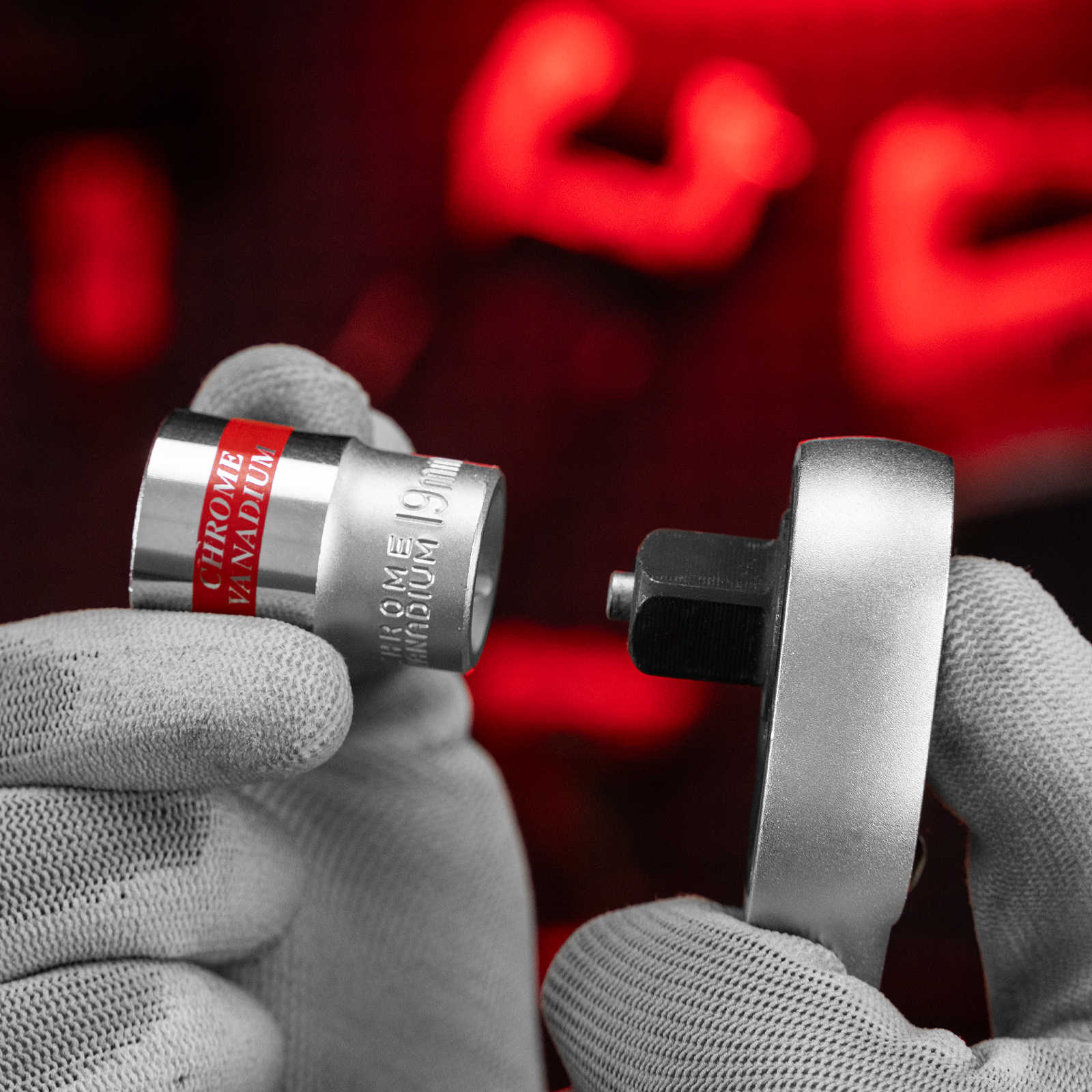 - Прочность — торцевая головка выполнена из высококачественной хромованадиевой стали, твердость рабочей части составляет 42 HRC.