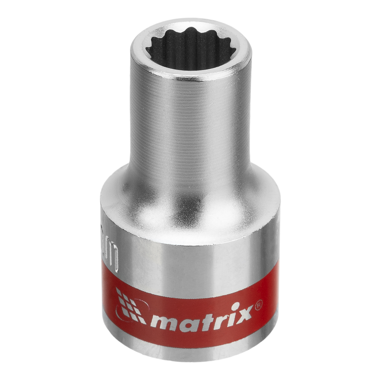 Головка торцевая, 9 мм, двенадцатигранная, CrV, под квадрат 1/2, хромированная Matrix