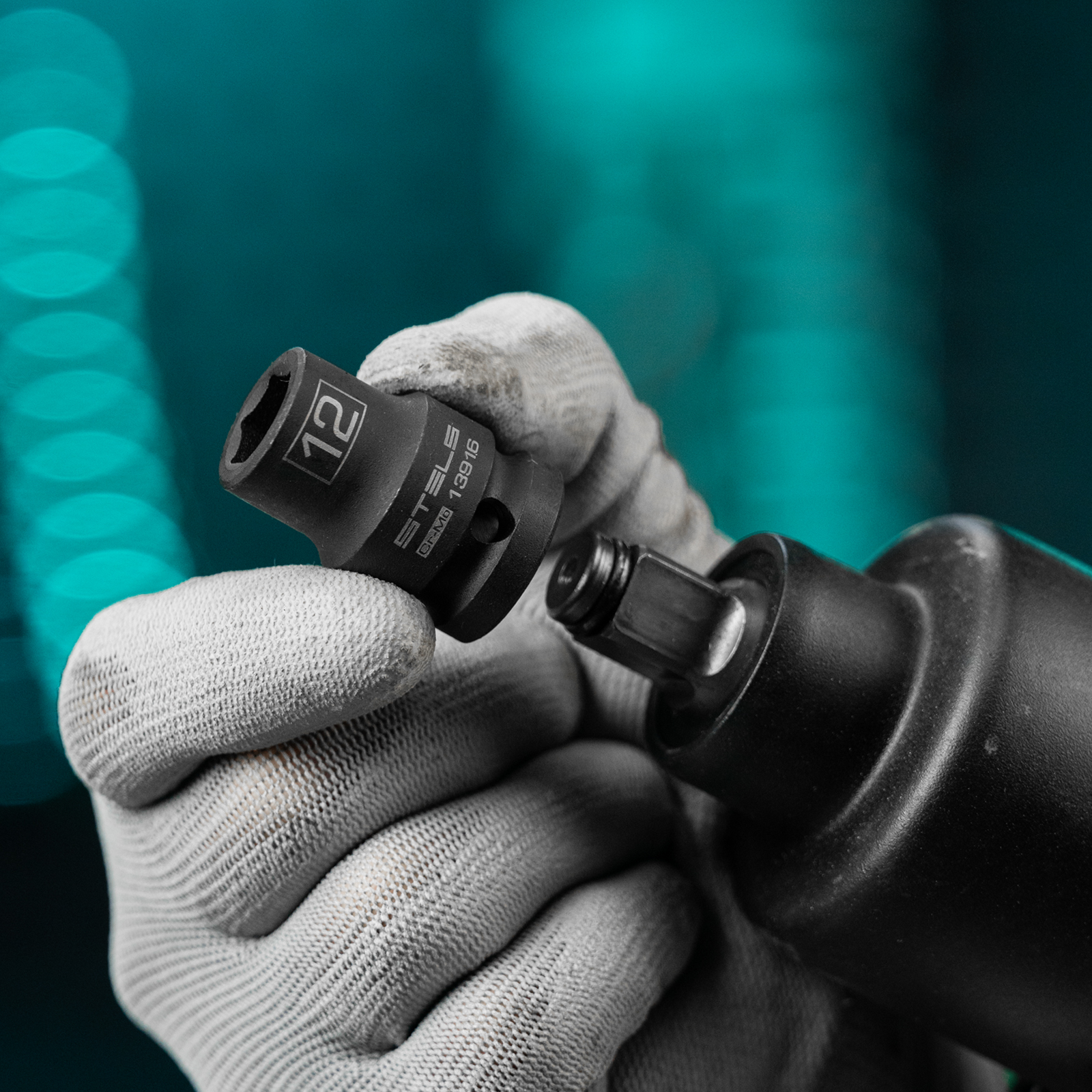 Ударная шестигранная головка Stels 13916 размером 12 мм, из стали CrMo, с присоединительным квадратом 1/2 дюйма, — сменная насадка для электрических и пневматических гайковертов. Она пригодится для монтажа и демонтажа крепежных элементов. Ударная головка выдерживает высокие динамические нагрузки, поэтому подходит для интенсивной эксплуатации на строительной площадке, в автомастерской и слесарном цеху.