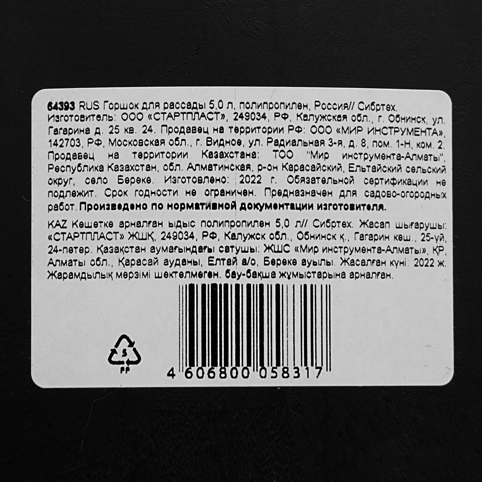 Горшок для рассады, 5 л, полипропиленовый, Сибртех
