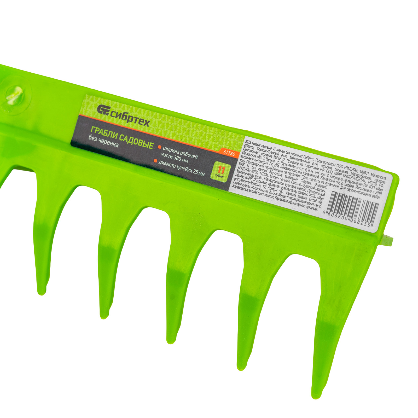 Грабли пластиковые, 380 мм, 11 прямых зубьев, усиленные, без черенка, Сибртех