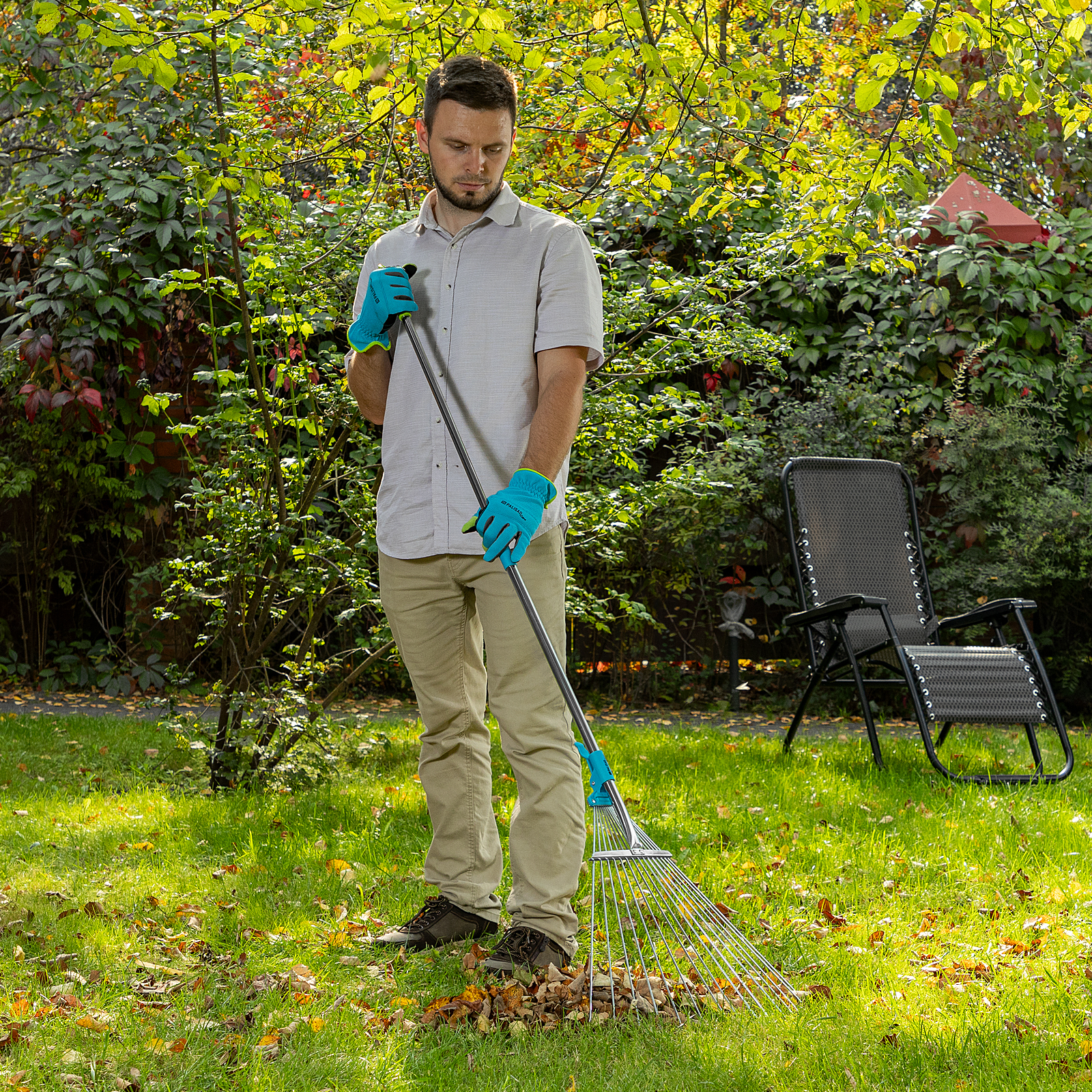 Веерные стальные грабли Palisad 61787 размером 190-600 х 790-1620 мм, раздвижные, с 15 зубьями и стальным черенком, пригодятся для работы на дачном участке. Используются для уборки веток, мусора, опавших плодов с газонов и грядок.