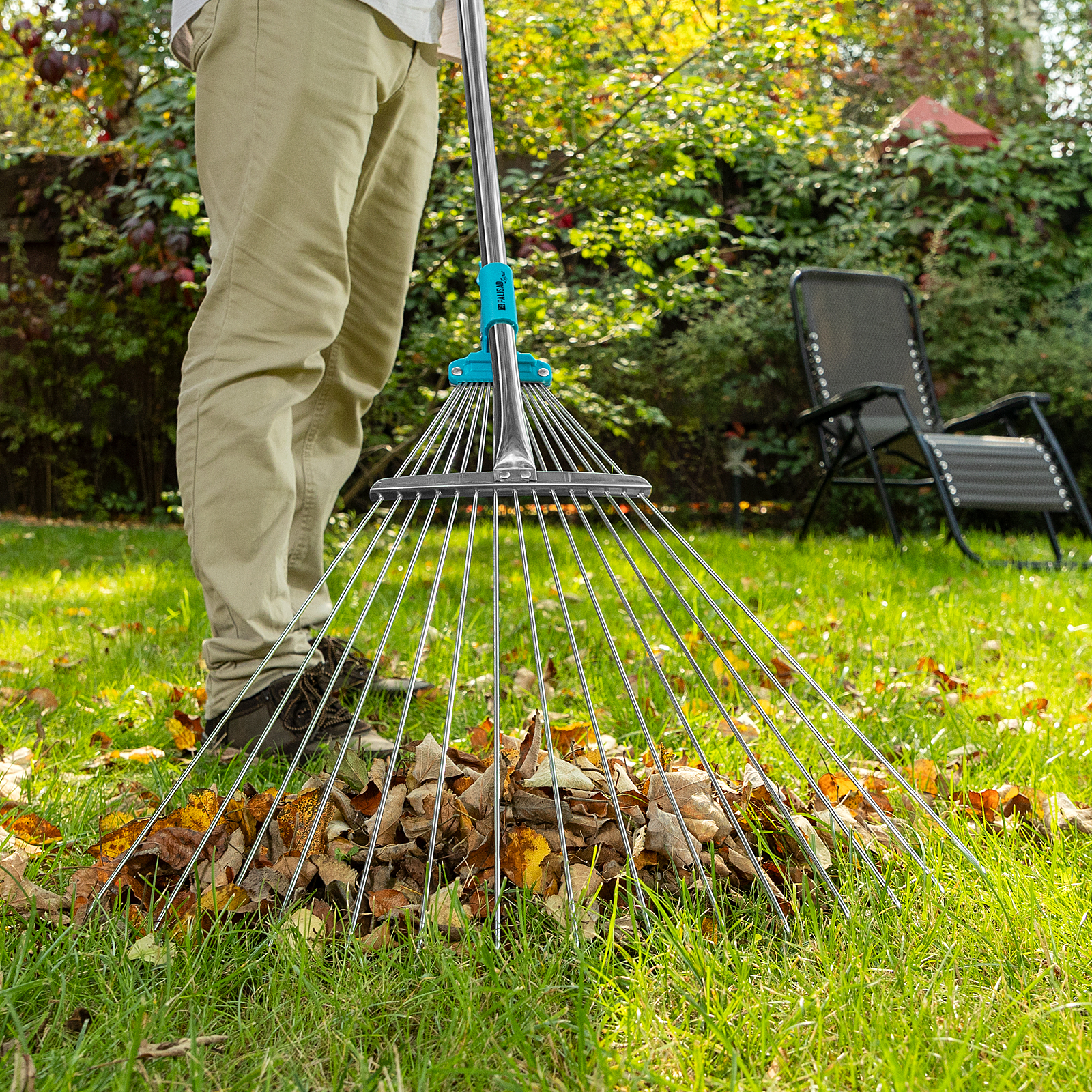 Грабли веерные стальные, 190 - 600 х 790 - 1620 мм,15 зубьев, раздвижные,стальной черенок, Luxe, Palisad
