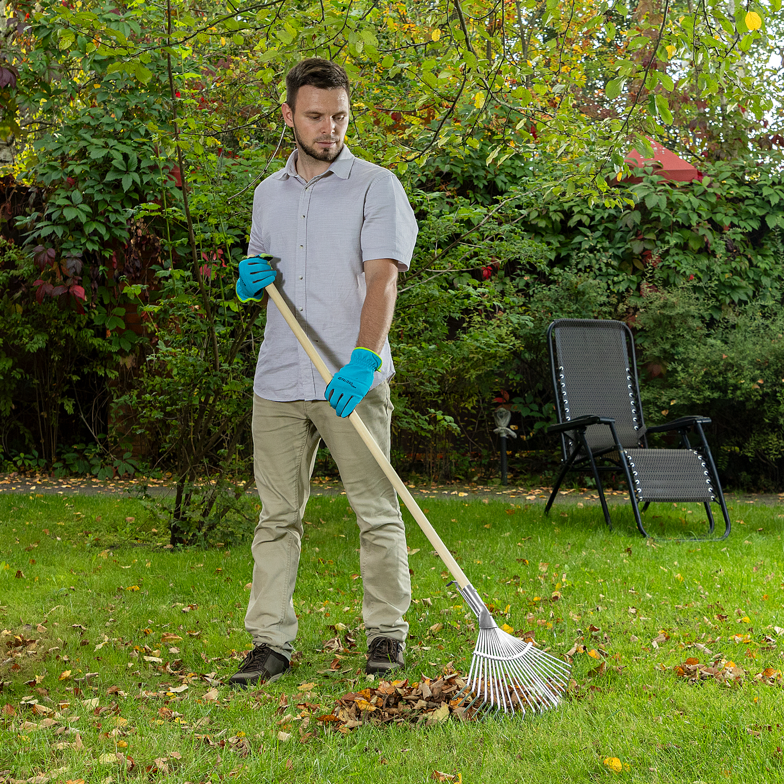 Грабли веерные стальные, 300 - 480 мм, 22 плоских зуба, оцинкованные,раздвижные, без черенка, Palisad