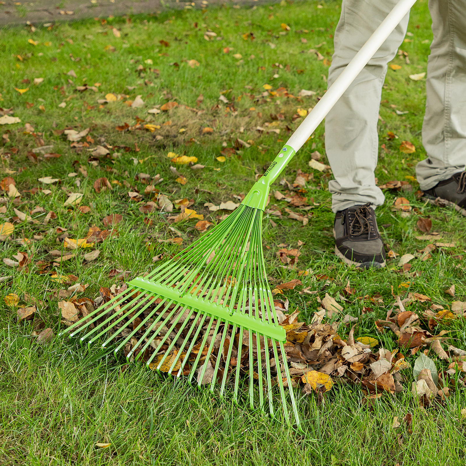 - Прочность и долговечность — грабли изготовлены из среднеуглеродистой стали и покрыты порошковой эмалью для защиты от коррозии.