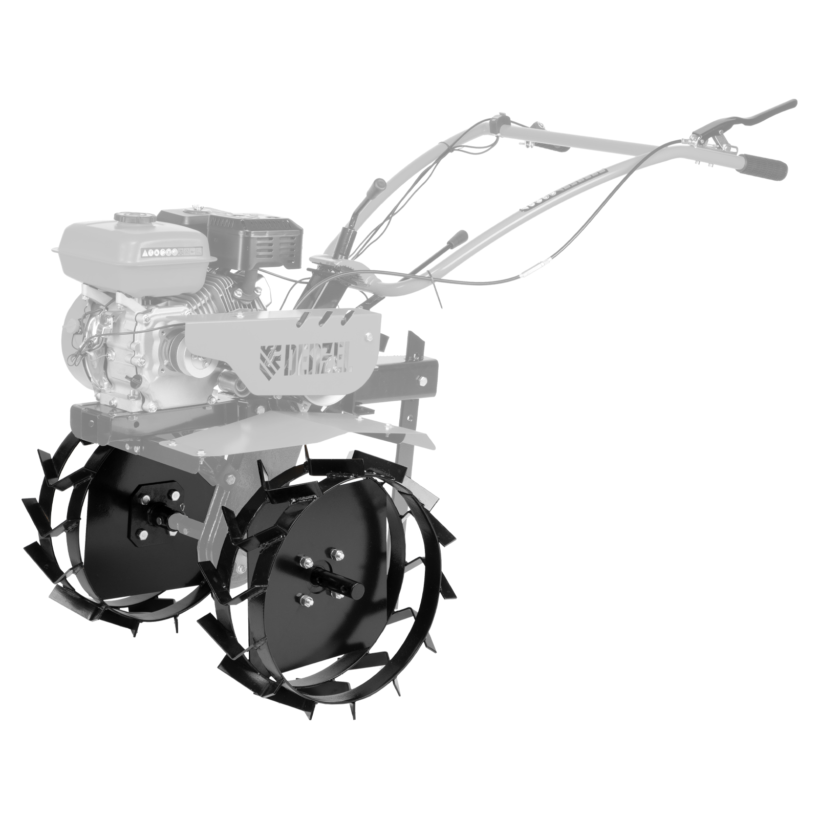 Грунтозацепы Denzel 59915 диаметром 460 мм и шириной 160 мм, с посадочным кругом 30 мм, 2 шт. в комплекте, устанавливаются на мотоблок и облегчают выполнение тяжелых работ: окучивание, вспахивание, рыхление. Обеспечивают хорошее сцепление с почвой, устойчивость на рыхлом грунте, а также улучшают проходимость. Изделия используются для ухода за дачным участком и проведения сельскохозяйственных работ.