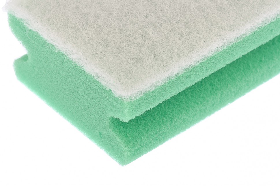 - Износостойкость — губка из поролона повышенной плотности не разрушается при длительном контакте с водой и не крошится при высыхании.