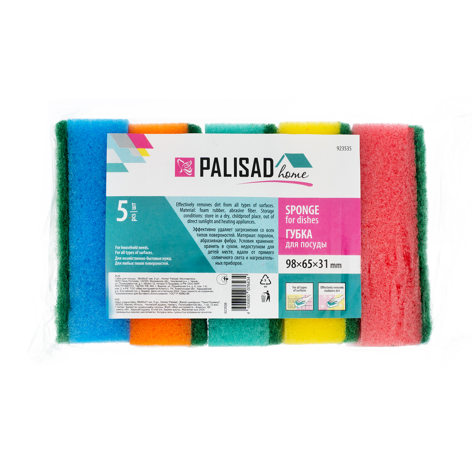 Губки для посуды Palisad Home Optima MAXI 923535 размером 98 х 65 х 31 мм, 5 шт. в упаковке, незаменимы для ведения домашнего хозяйства. С их помощью можно отмыть посуду, сантехнику, плитку и другие поверхности.
