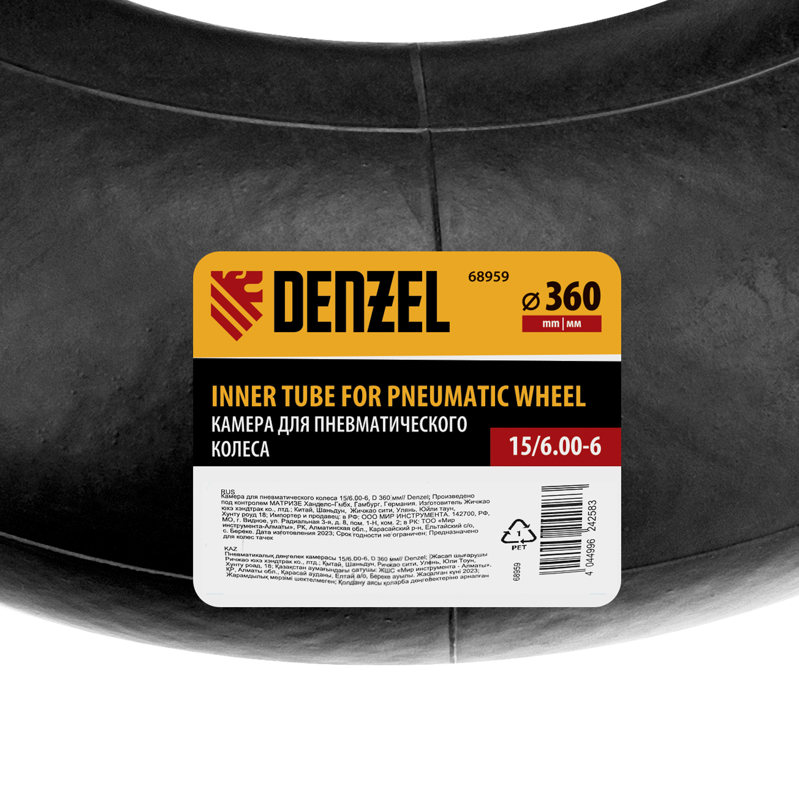 Камера для пневматического колеса 15/6.00-6, D 360 мм Denzel |