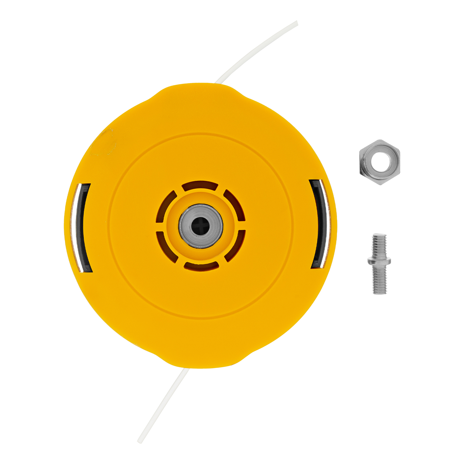 - Универсальность — в комплект поставки входит дополнительный крепеж, что позволяет устанавливать катушку на триммеры с различным типом крепления.