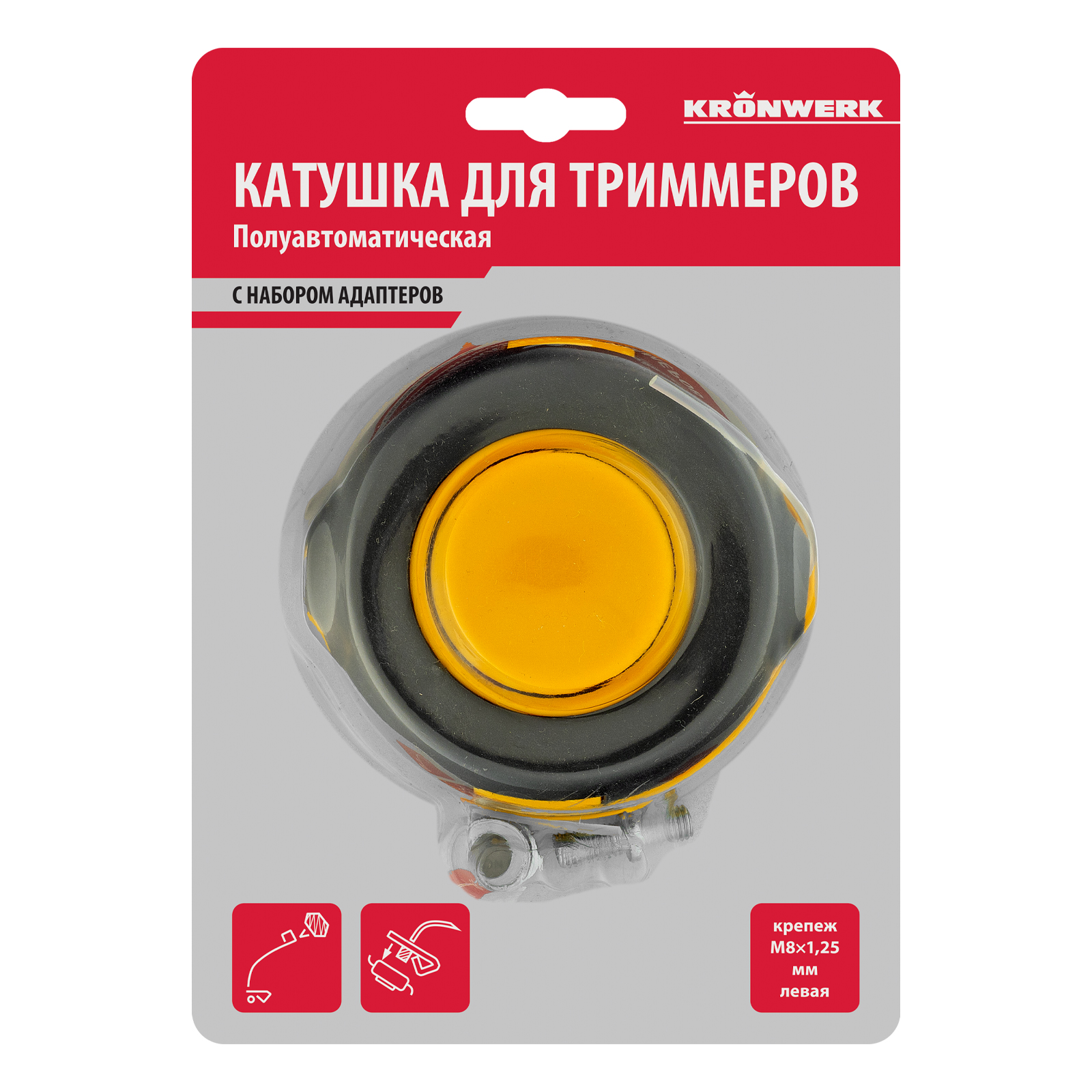 Катушка для триммеров гайка М8 лев,прав гайка М10 лев.адаптер М8, шаг 1,25 мм Kronwerk