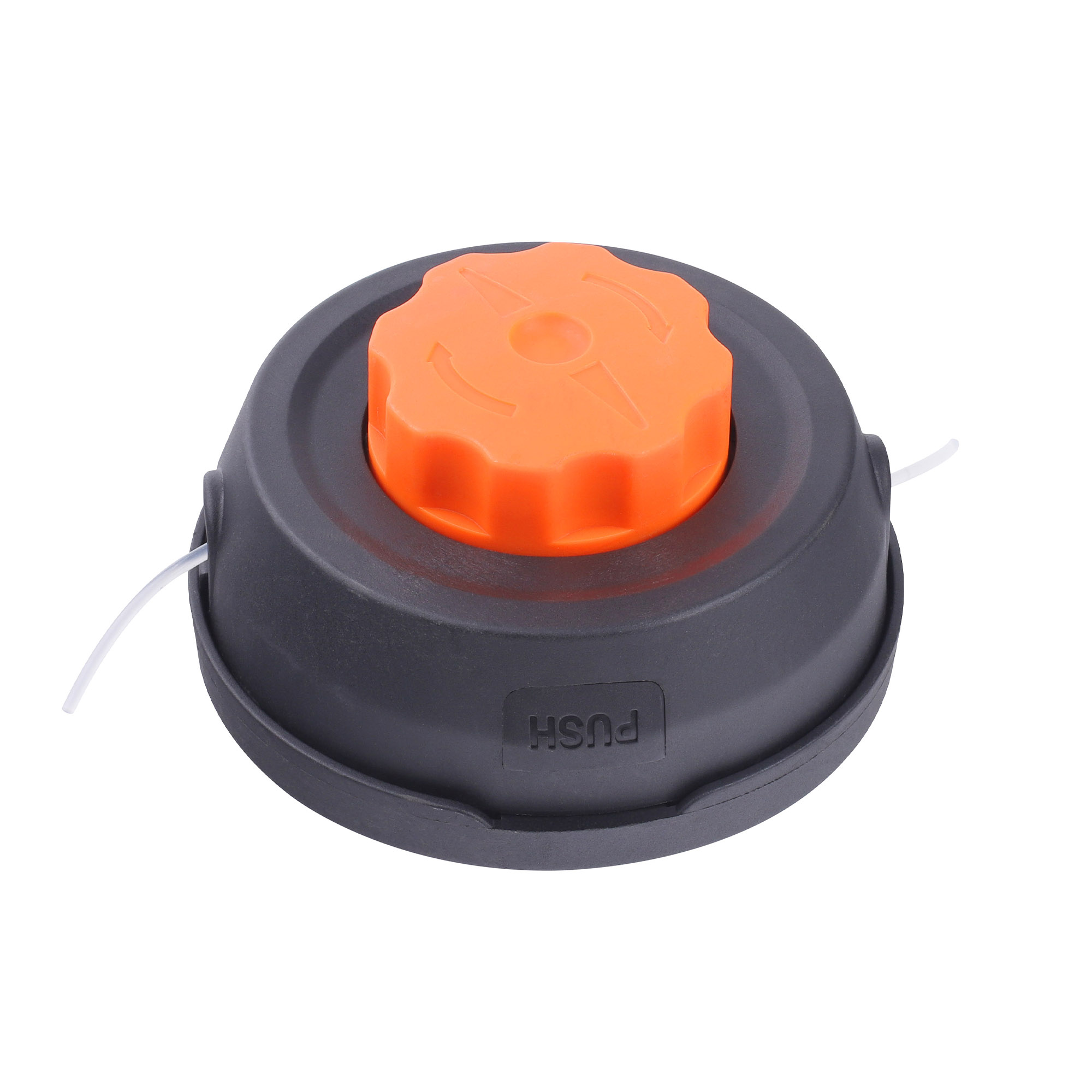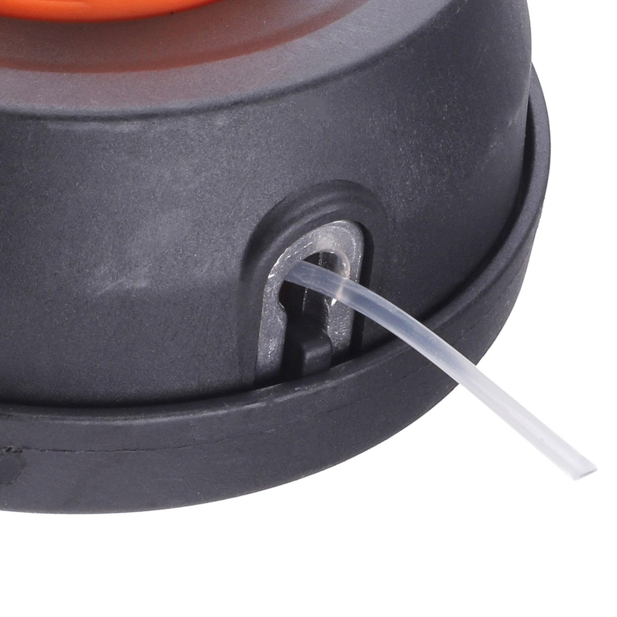 Заправка лески осуществляется без снятия крышки с катушки, достаточно вставить в отверстия катушки леску и намотать ее с помощью кнопки-фиксатора.