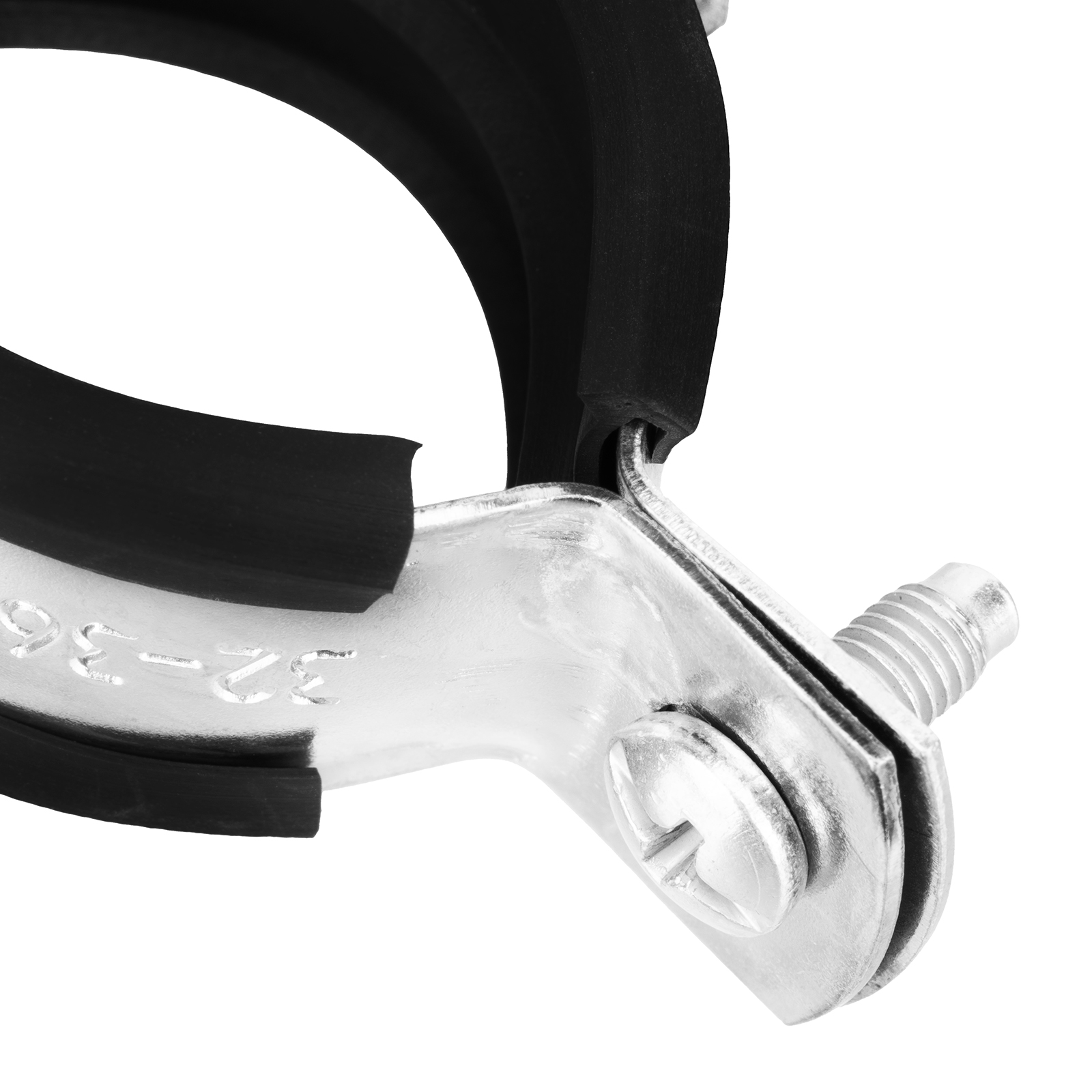 Хомут сантехнический для труб 32-36 (1") с резиновым уплотнением, шпилькой и дюбелем, 1 шт, Сибртех