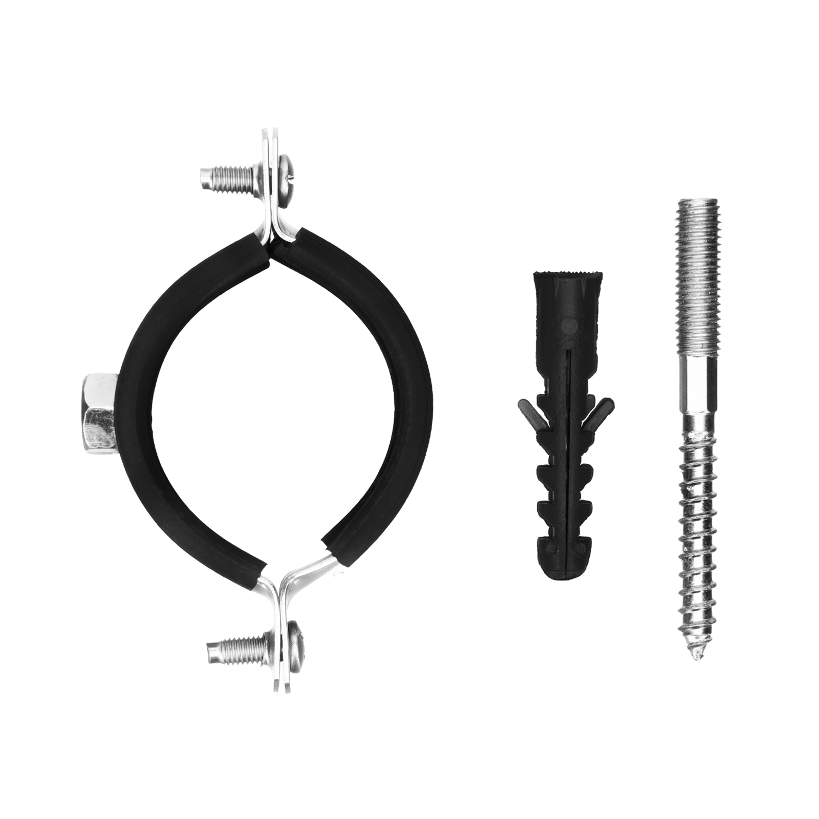 Хомут сантехнический для труб 47-51 (1 1/2") с резиновым уплотнением, шпилькой и дюбелем, 1 шт, Сибртех