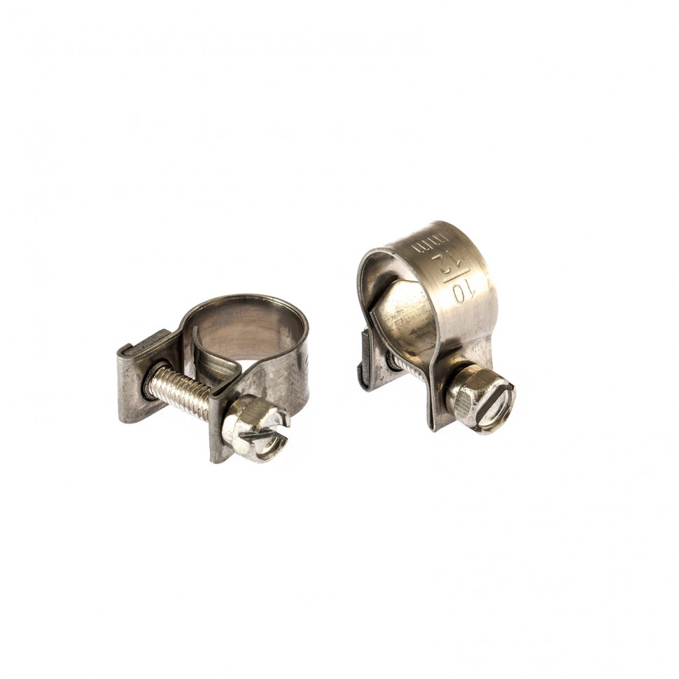 Винтовые металлические хомуты Сибртех MINI 475033 из нержавеющей стали (W4), шириной 9 мм, 2 шт. в упаковке, имеют диаметр охвата 10-12 мм и предназначены для обжима шлангов и патрубков. Затягиваются винтами, что обеспечивает надежность крепления. Используются при прокладке коммуникаций, в машино- и станкостроении, их устанавливают в холодильном и пищевом оборудовании.