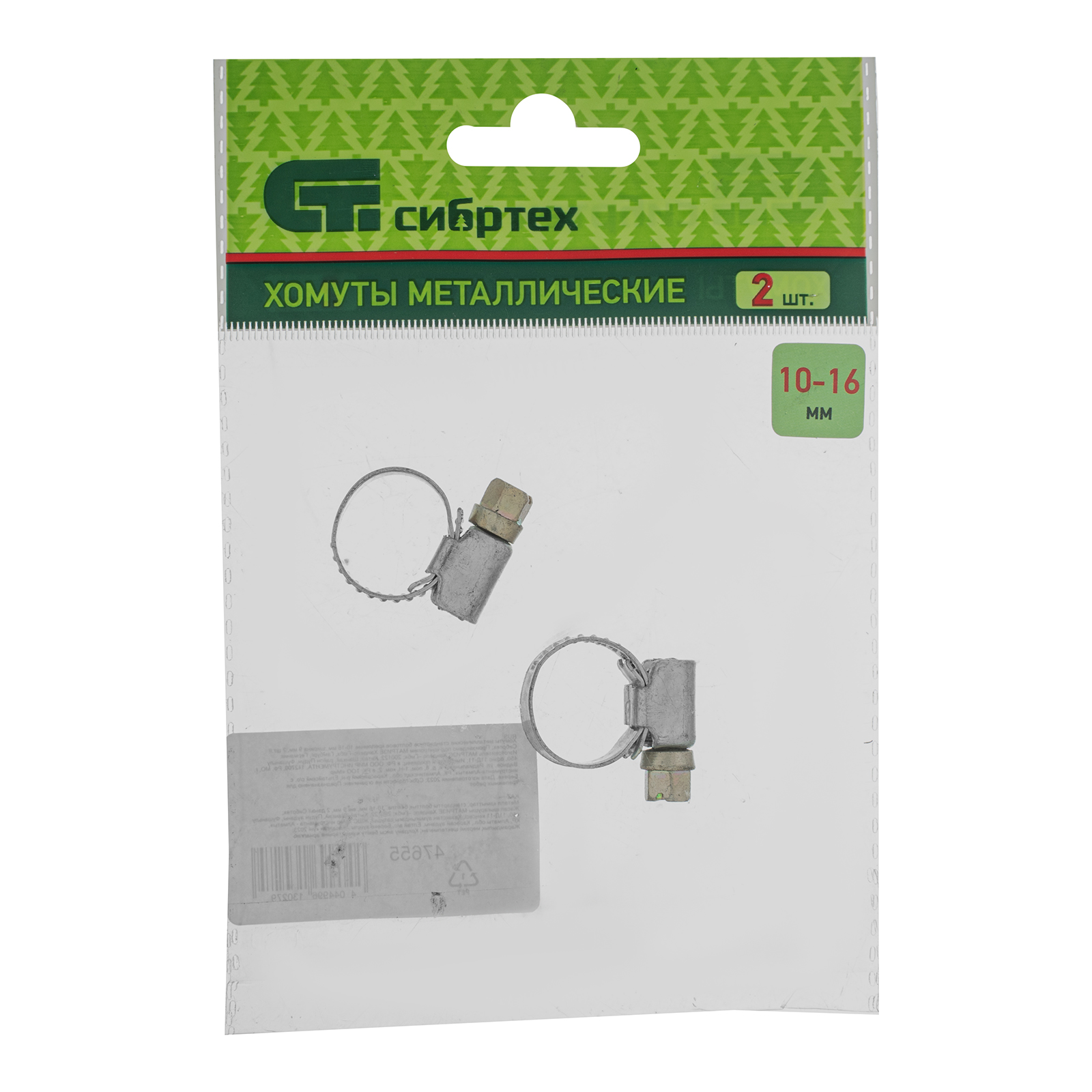 Металлические хомуты Сибртех 47655 со стандартным болтовым креплением, диаметром охвата 10-16 мм и шириной 9 мм, 2 шт. в упаковке, — крепежные элементы для соединения труб и шлангов. Обеспечивают плавную регулировку диаметра обжима, подходят для многократного использования. Строительные стяжки применяют для монтажа водопроводных, отопительных, вентиляционных систем.