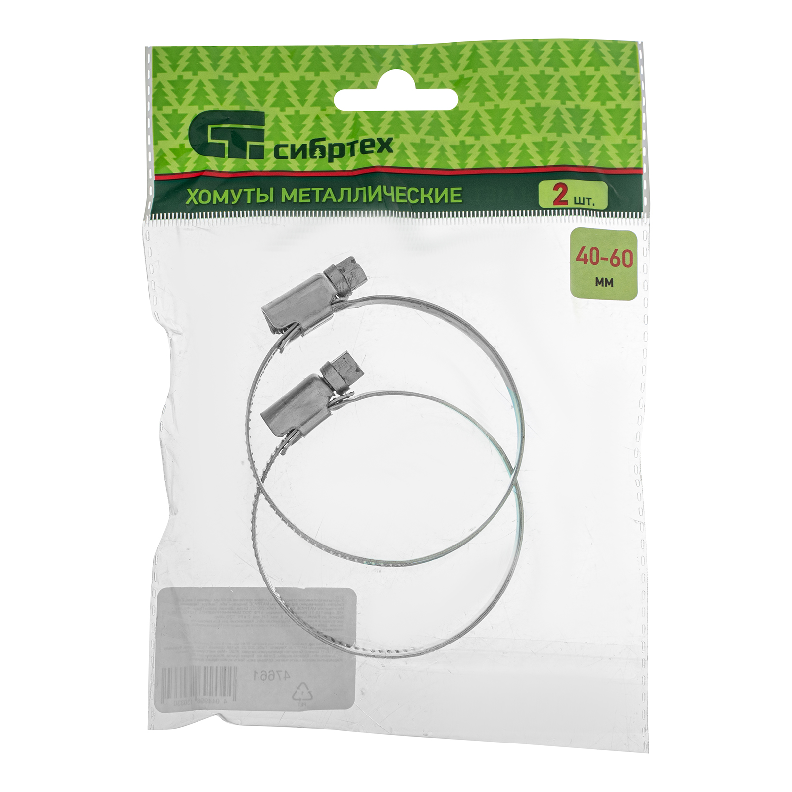 Металлические хомуты Сибртех 47661 со стандартным болтовым креплением, диаметром охвата 40-60 мм и шириной 9 мм, 2 шт. в упаковке, — крепежные элементы для соединения труб и шлангов. Обеспечивают плавную регулировку диаметра обжима, подходят для многократного использования. Строительные стяжки применяют для монтажа водопроводных, отопительных, вентиляционных систем.