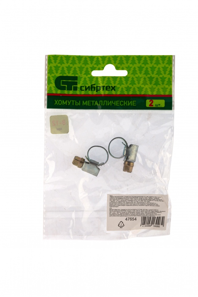 Металлические хомуты Сибртех 47654 со стандартным болтовым креплением, диаметром охвата 8-12 мм и шириной 9 мм, 2 шт. в упаковке, — крепежные элементы для соединения труб и шлангов. Обеспечивают плавную регулировку диаметра обжима, подходят для многократного использования. Строительные стяжки применяют для монтажа водопроводных, отопительных, вентиляционных систем.