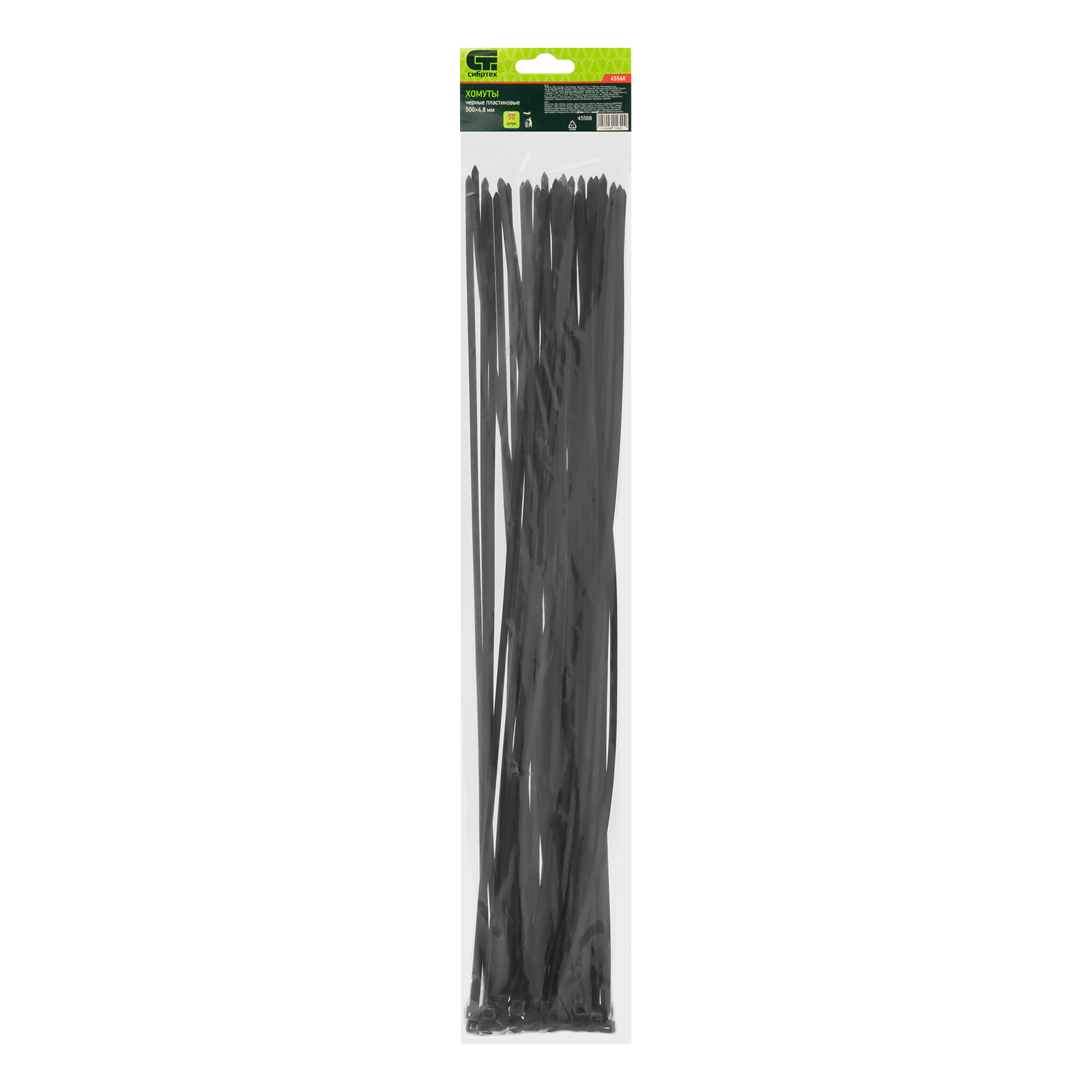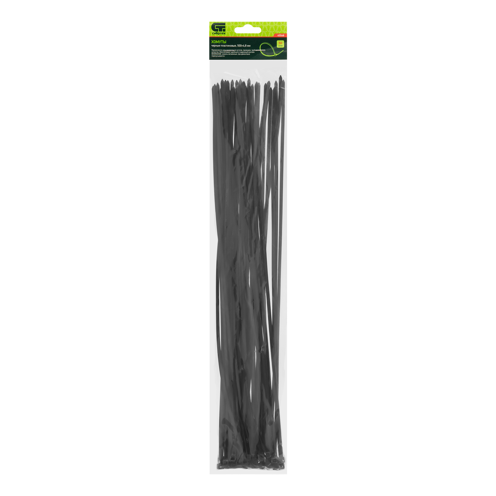 Хомуты, 500 x 4.8 мм, пластиковые, черные, 50 шт Сибртех