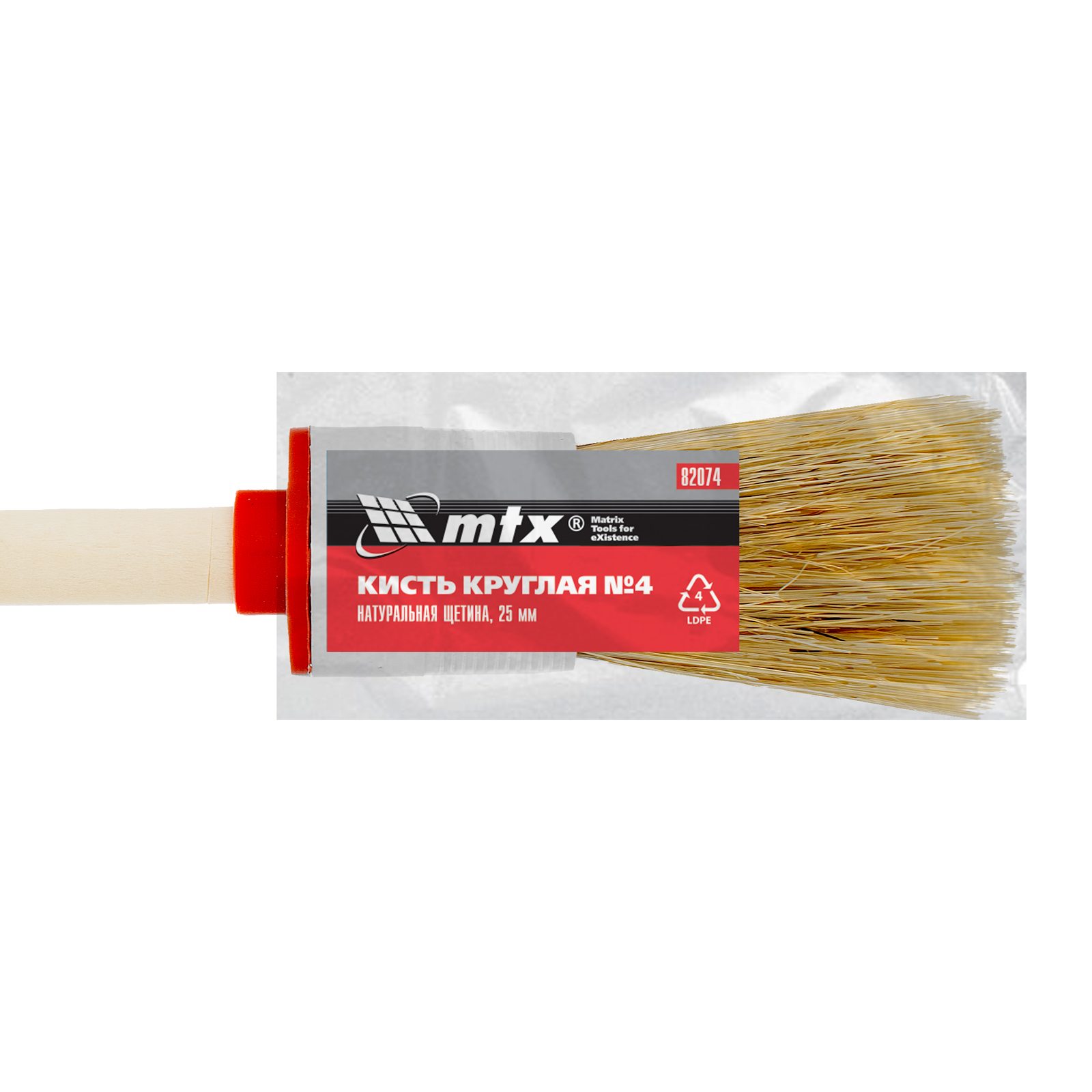 Кисть круглая № 4 (25 мм) натуральная щетина, деревянная ручка MTX