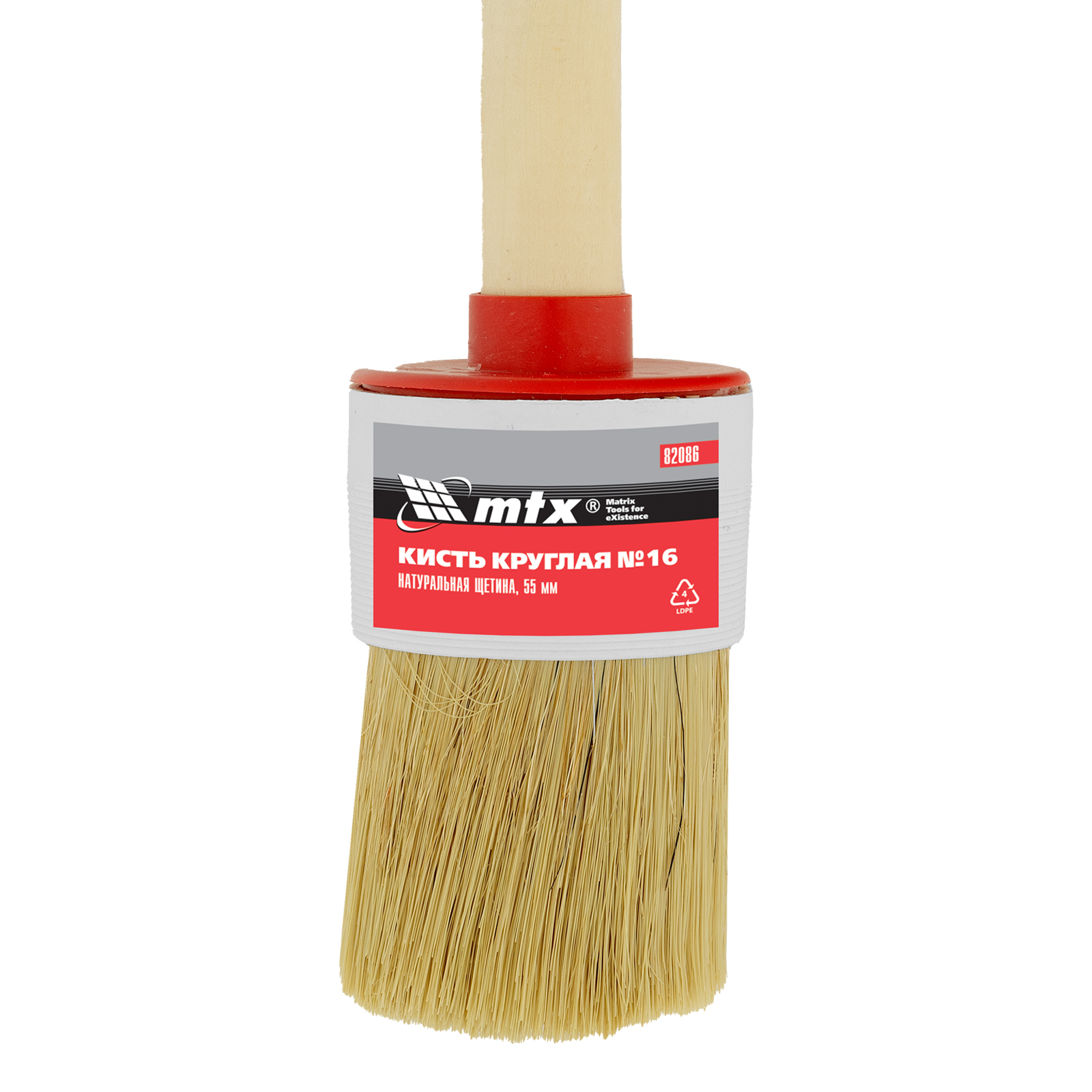 Круглая кисть MTX №16 82086 диаметром 55 мм, с натуральной щетиной и деревянной ручкой, пригодится в быту для окрашивания узких длинных поверхностей. Светлая натуральная свиная щетина с добавлением искусственной обладает высокой износоустойчивостью и может использоваться для нанесения красок с содержанием растворителей, а также масляных красок и лаков.