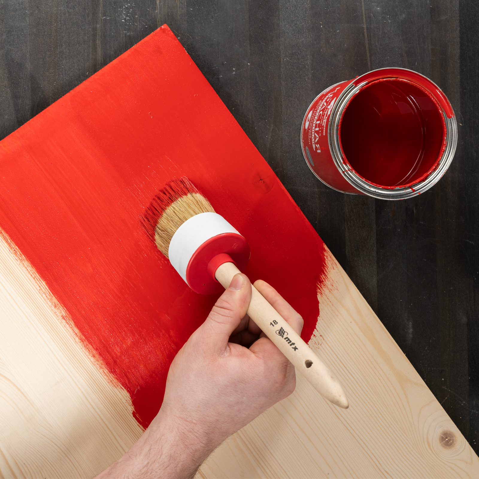 Круглая кисть MTX №18 82088 диаметром 60 мм, с натуральной щетиной и деревянной ручкой, пригодится в быту для окрашивания узких длинных поверхностей. Светлая натуральная свиная щетина с добавлением искусственной обладает высокой износоустойчивостью и может использоваться для нанесения красок с содержанием растворителей, а также масляных красок и лаков.
