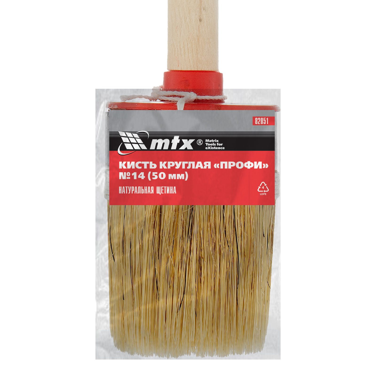 Круглая кисть MTX Профи №14 82051 диаметром 50 мм, с натуральной щетиной и деревянной ручкой, используется при проведении профессиональных малярных работ. Рабочая часть из натуральной свиной щетины с небольшим добавлением искусственной устойчива к агрессивным масляным краскам и ЛКМ на основе растворителей. Круглая кисть оптимально подходит для окрашивания узких и труднодоступных участков.